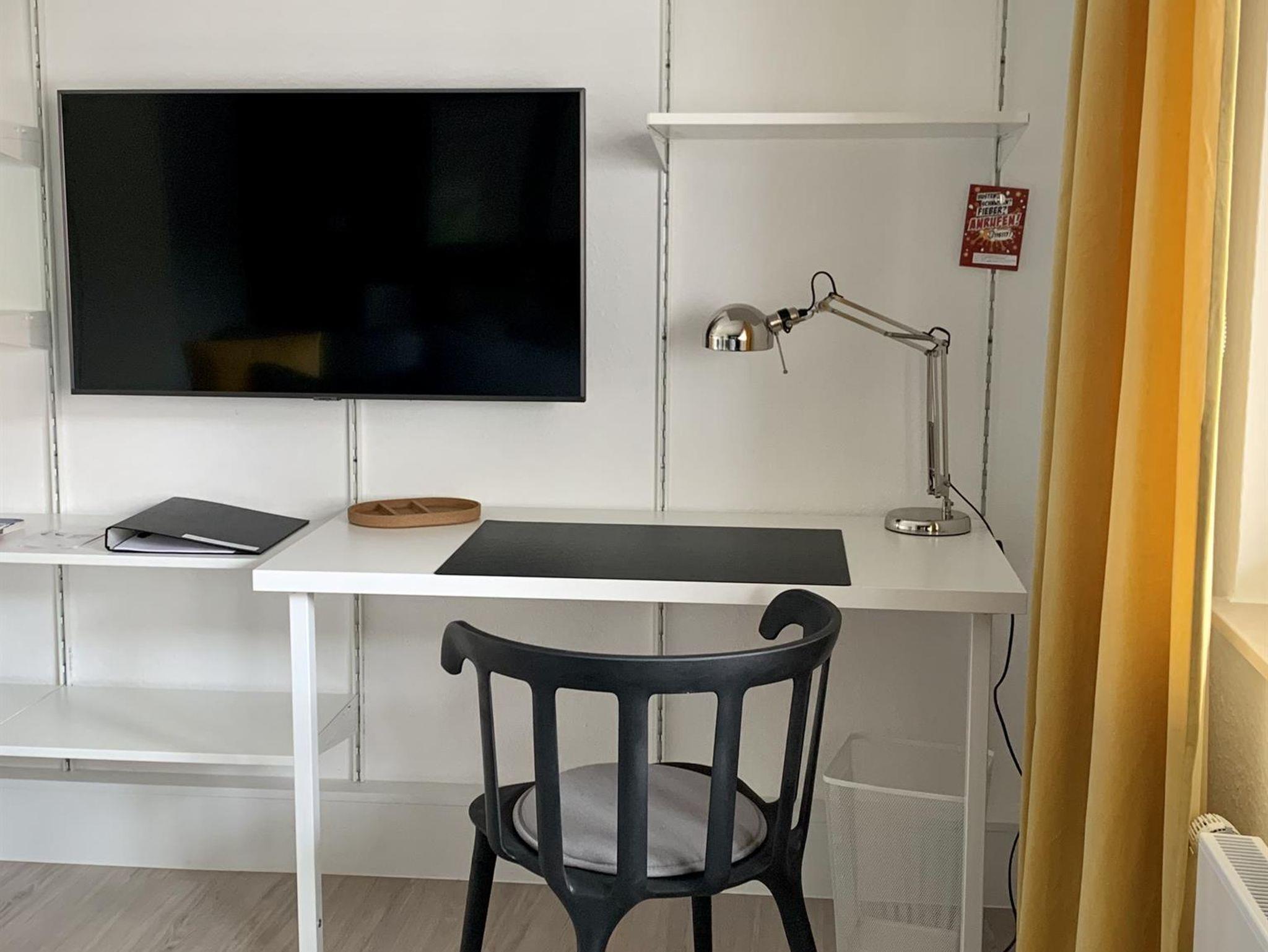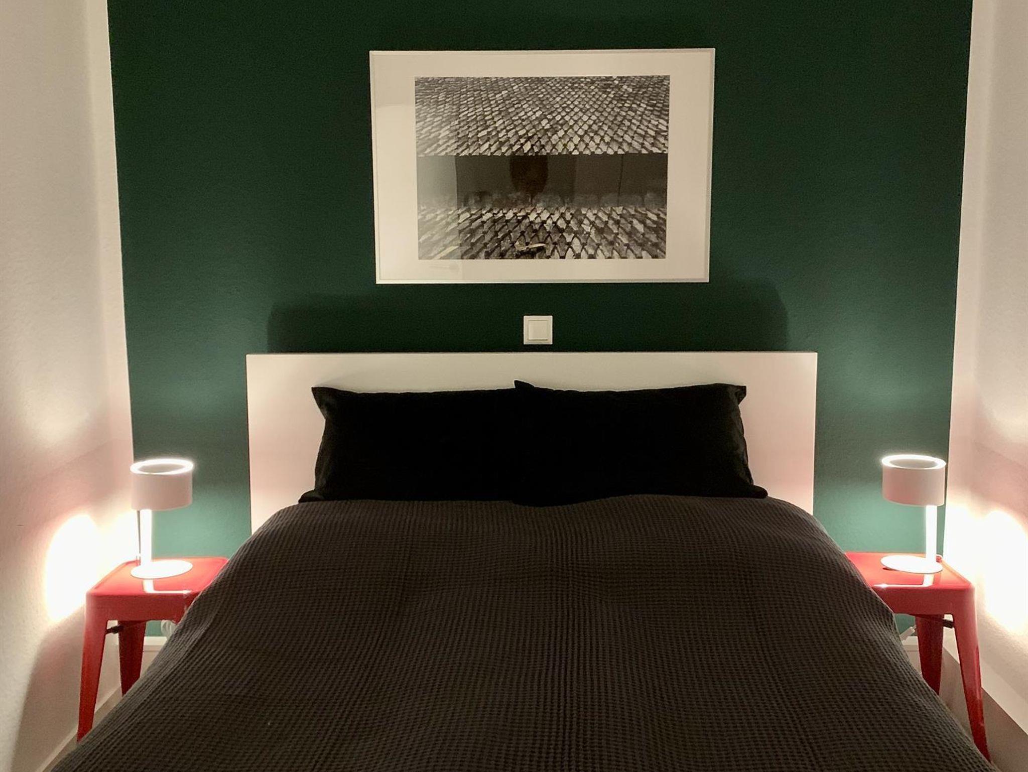 Interessant an dieser Wohnung ist die Aufteilung, die den Gästen die Möglichkeit des individuellen Rückzugs bietet. Konkret bedeutet das: Wir haben zwei voneinander trennbare Bereiche geschaffen. In jedem dieser beiden Bereiche gibt es neben dem Schlafbereich einen Essplatz für bis zu vier Personen, eine Couch, Fernseher sowie einen Arbeitsplatz. Man teilt sich die Küche, das Bad und das Gäste-WC.
