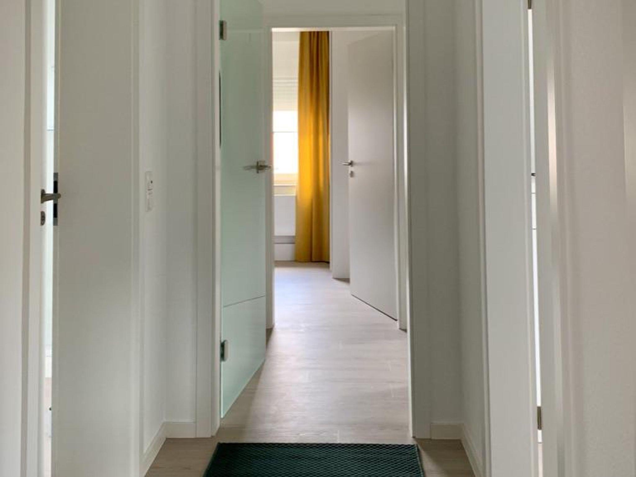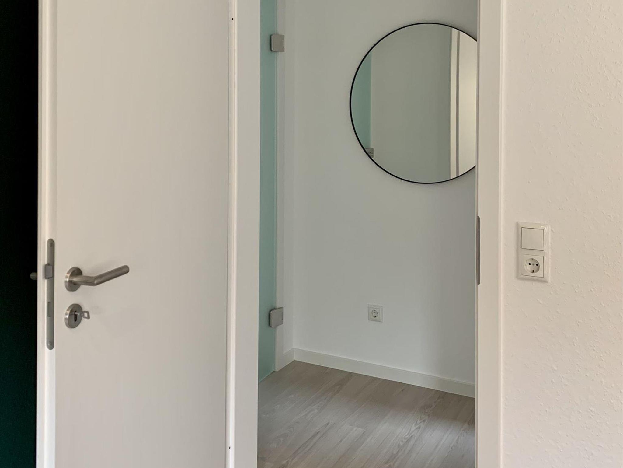 Eine Garderobe für Ihre Jacken und Mäntel, eine Ablage für nasse Schuhe, eine Sitzgelegenheit, sowie ein Ganz-Körper-Spiegel stehen bereit, um Sie entweder gut gelaunt in den Tag zu entlassen oder abends den ersten „Ballast“ abzunehmen.
