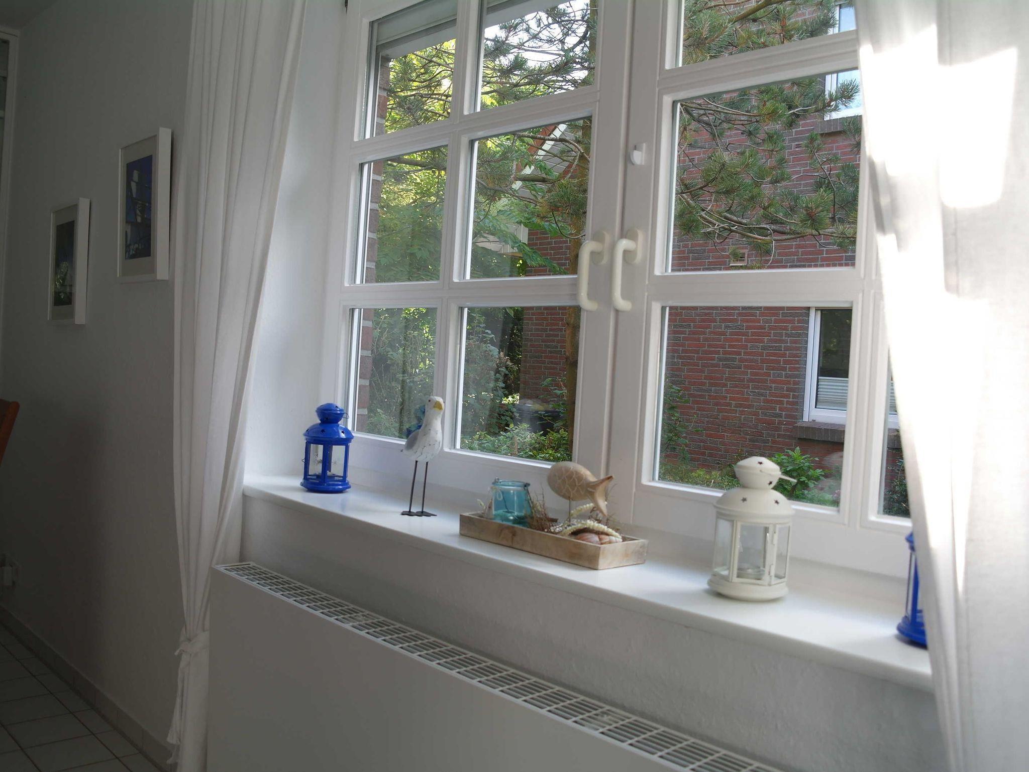 Doppelhaushälfte, zentrale Lage, ruhige Umgebung, mit kleinem Garten und Terrasse in Südlage, im Erdgeschoß: separate Küche (Mikrowelle, Herd, Backofen, Spülmaschine, Kaffeemaschine, Senseo-Kaffeepadmaschine, Wasserkocher, Toaster), Gäste WC, Wohn-/Esszimmer, im Obergeschoss: zwei Schlafzimmer mit je 2 Betten (ein Schlafzimmer mit Zustellmöglichkeit für ein Kinderbett, Bad: Dusche (Glastür)/WC, Waschmaschine, im Dachgeschoss ein Schlafzimmer mit 2 Einzelbetten (ebenfalls mit Kinderbett möglich).