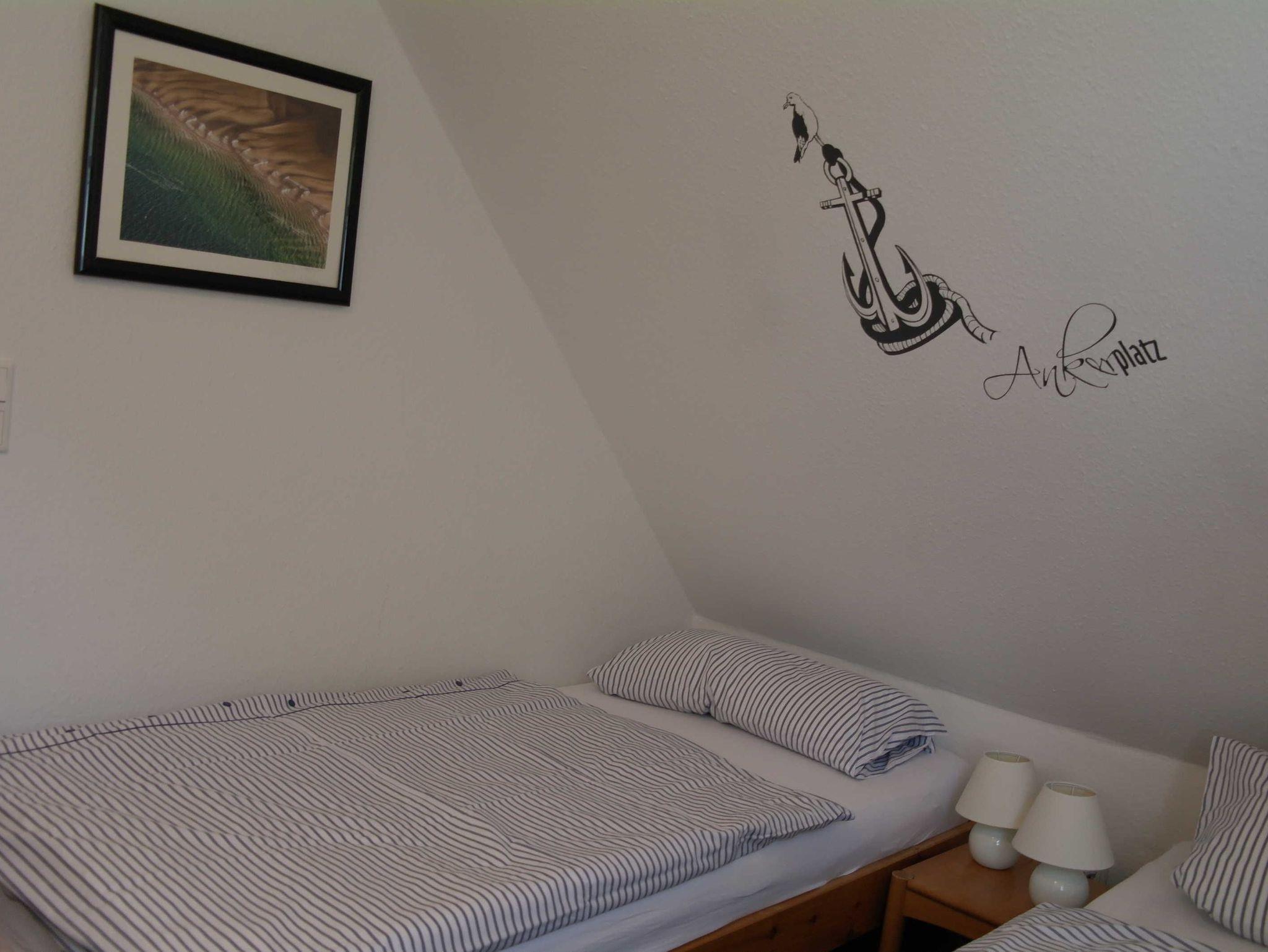 Helles, freundliches Wohnzimmer mit Sat-TV, separate Küche. Gäste-WC, Terrasse in Südlage, Garten, Gartenhaus für Fahrräder, Grillmöglichkeit. Im Obergeschoss 1 Schlafzimmer mit Doppelbett 2x2 m und Kinderbett, 1 Schlafzimmer mit 2 Einzelbetten 0,9 x 1,9 m, Bad mit Dusche/WC und Waschmaschine. Im Dachgeschoss ein Schlafzimmer mit 2 Einzelbetten 0,9 x 2,0 m. Ganzjährige Vermietung.