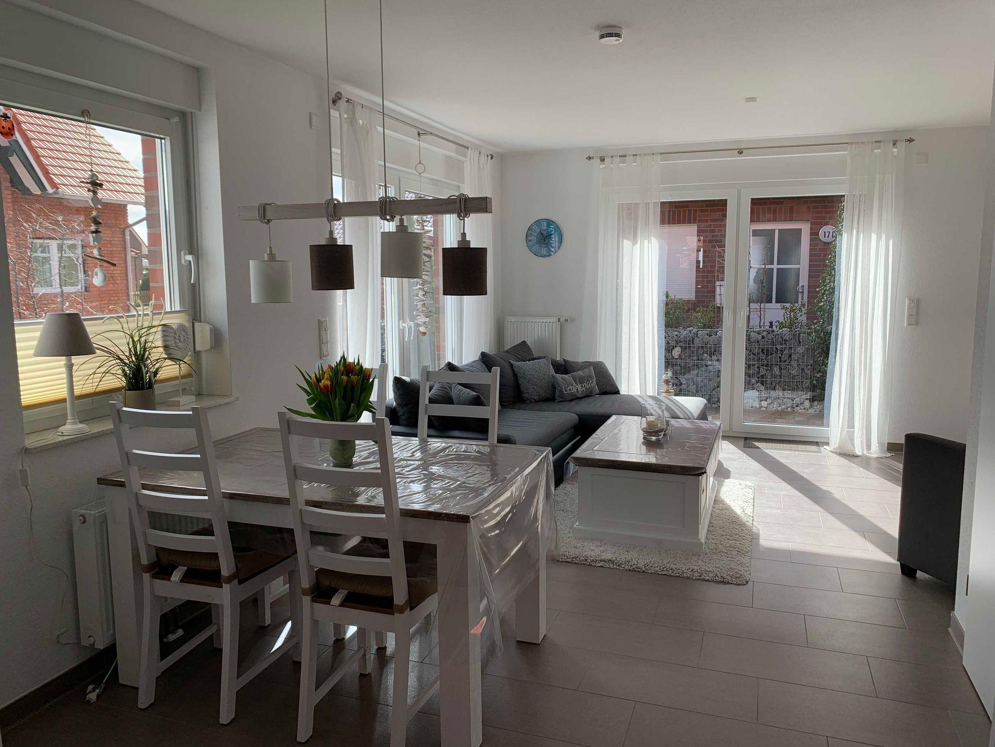 Diese neuewertige und attraktive Doppelhaushälfte liegt nur ca. 10 Gehminuten vom Ortskern entfernt in einem Neubaugebiet von Carolinensiel. Das Ferienhaus verfügt über 2 Sonnenterrassen (Süd- und Ostlage) mit Anbindung an einen kleinen abgeschlossenen Garten. Außerdem sind alle Fenster mit Rollläden ausgestattet. Weiterhin bietet das Haus einen eigenen PKW-Abstellplatz sowie ein Gartenhaus als Unterstellmöglichkeit für Ihre Fahrräder.