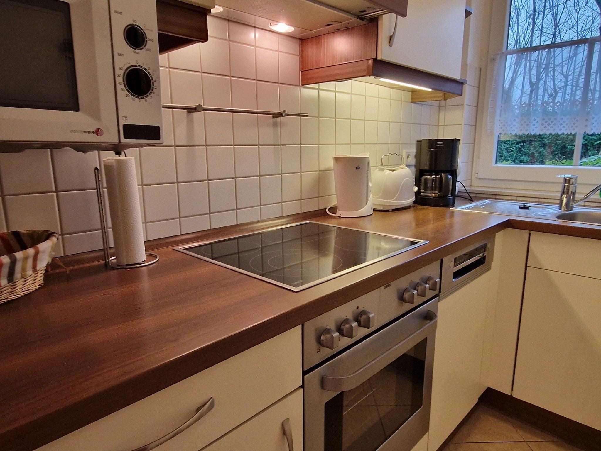 Das ca. 70m² große und komfortable Reihenendhaus bietet nicht nur ein großzügiges Wohnzimmer mit angrenzendem Essbereich und einer modernen, offenen Küche, auch die Terrasse lädt bei schönen Sommerabenden zum Grillen ein. Zusätzlich finden Sie ein Gäste-WC. Eine offene Treppe mit Treppenschutzgitter führt ins Obergeschoss, in dem sich zwei Schlafzimmer (1x1 Doppelbett, 1x2 Einzelbetten) und ein Badezimmer mit Dusche und WC befinden. Alle Fenster sind zudem mit Rollläden, die Böden mit Fliesen ausgestattet. WLAN ist ebenfalls vorhanden.