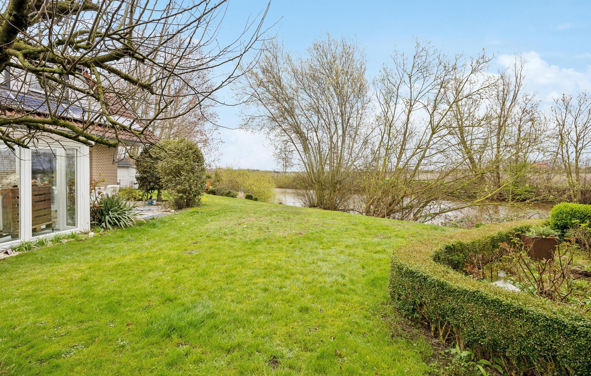 Gehen Sie über das Grundstück des Hauses zum Wasser, sonnen Sie sich auf der Plattform und steigen die in die erfrischen Fluten des Flusses ein.