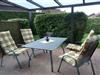 Parterre: (Küche(Kochplatte, Wasserkocher, Toaster, Kaffeemaschine, Backofen, Mikrowelle, Spülmaschine, Kühlschrank, Tiefkühlschrank), Wohn/Esszimmer(TV, Esstisch, Radio), Schlafzimmer(Doppelbett), Schlafzimmer(Einzelbett, Einzelbett), Badezimmer(Dusche, Waschbecken, Toilette, Waschmaschine)) Terrasse, Garten, Gartenmöbel