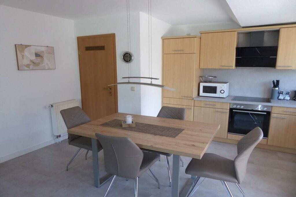 Ob zu zweit oder zu viert, mit Kindern oder Freunden, in unserer hellen und modernen Ferienwohnung Am Harlebogen (ca. 60 m²) werden Sie sich wohlfühlen. Die Wohnung wurde zu Jahresbeginn 2024 aufwendig renoviert und mit hellem, fußfreundlichen Vinyl-Boden versehen, Schlafzimmer und Studio neu und modern möbliert. Unsere Ferienwohnung befindet sich im ersten Obergeschoss eines Hauses mit nur vier Einheiten m Ende einer Sackgasse. Auf einer Ebene finden Sie einen Wohn-Essraum (LED TV) mit Küche und Ausgang zum Balkon sowie Schlafzimmer, großzügiges Duschbad. In der praktischen und gut eingerichteten Küche (Geschirrspüler) können Sie einfach aber auch aufwendig kochen. Großzügiges Studio im Dachgeschoss mit separatem WC. Dort steht neben einem Einzelbett jetzt eine gemütliche Schlafcouch zum Ausziehen (Liegefläche 1,4 x 2,0 m) sowie ein zweites LED TV sowie Hifi-Anlage (USB) bereit. Rauchen in der Wohnung und Tiere nicht erlaubt.