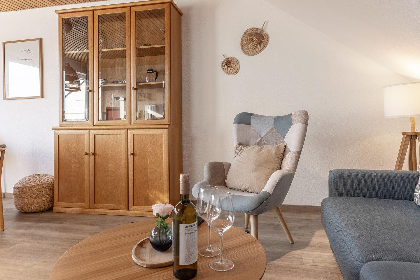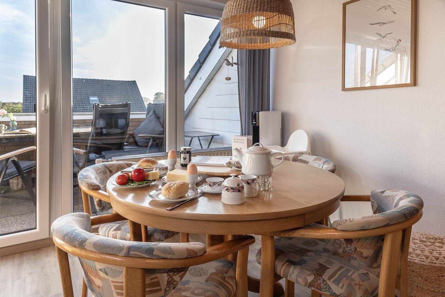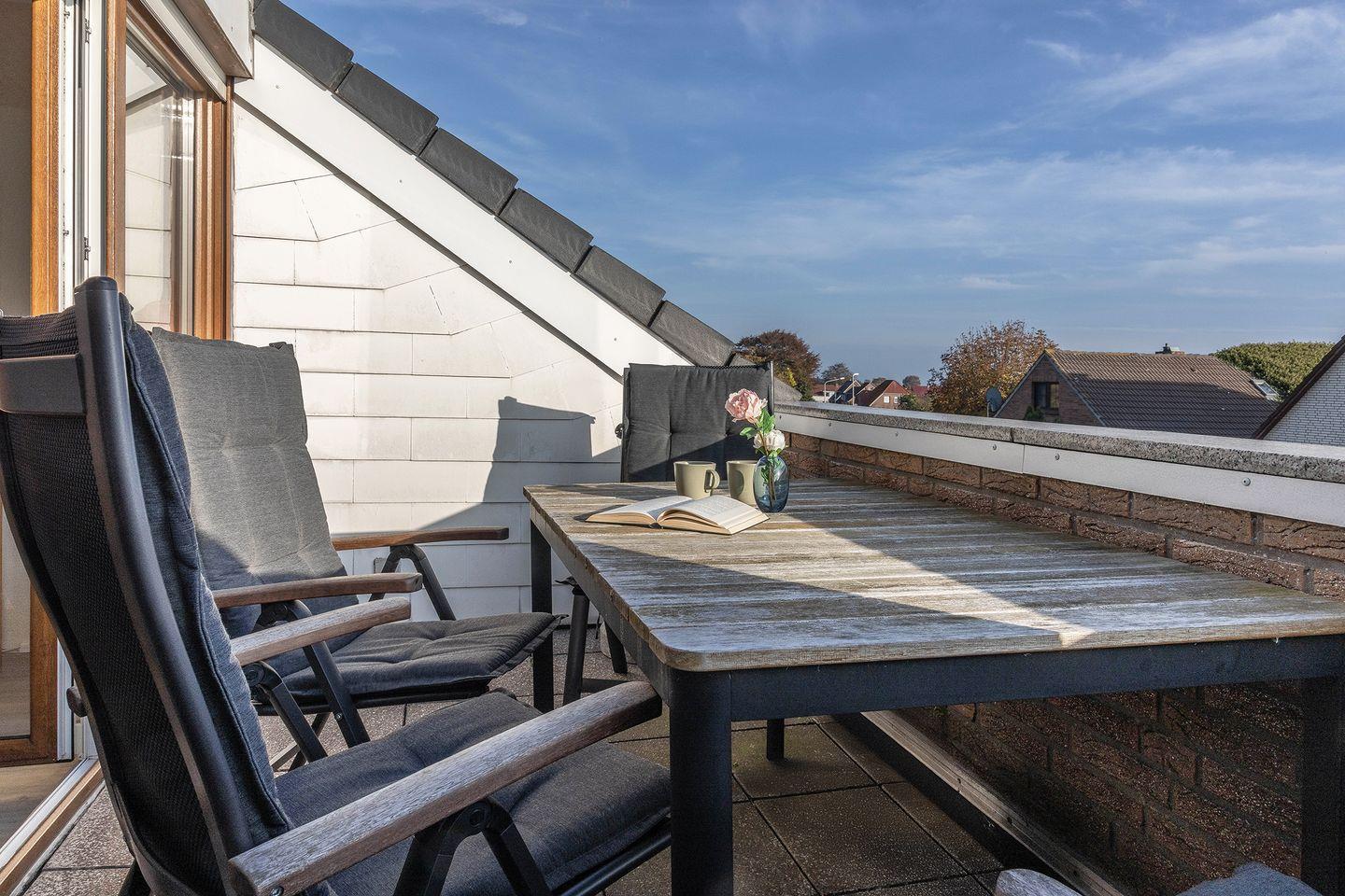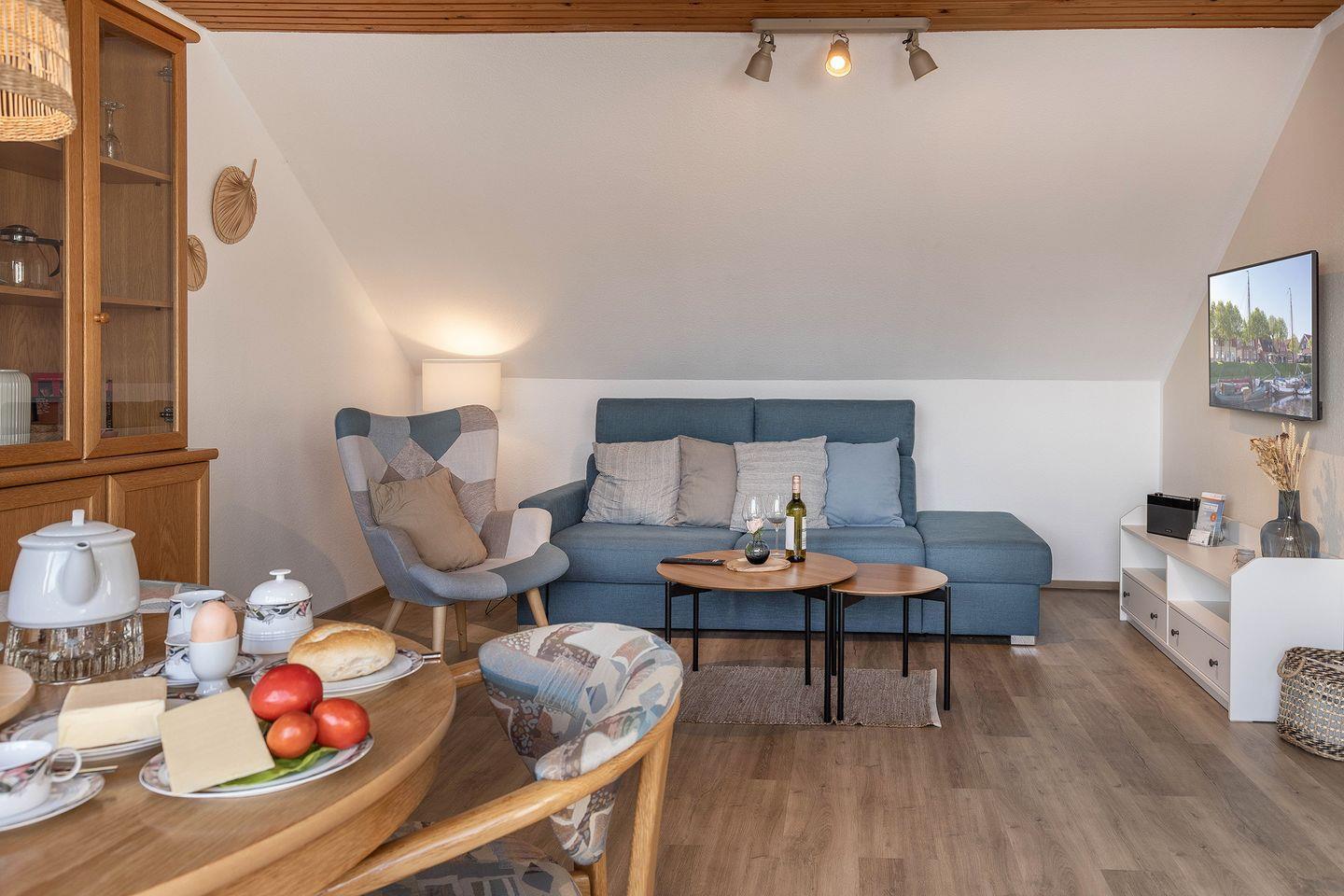 Die gemütliche Seekiste im Dachgeschoss im Ortskern von Carolinensiel bietet komfortables Wohnen mit Balkon und moderner Ausstattung.