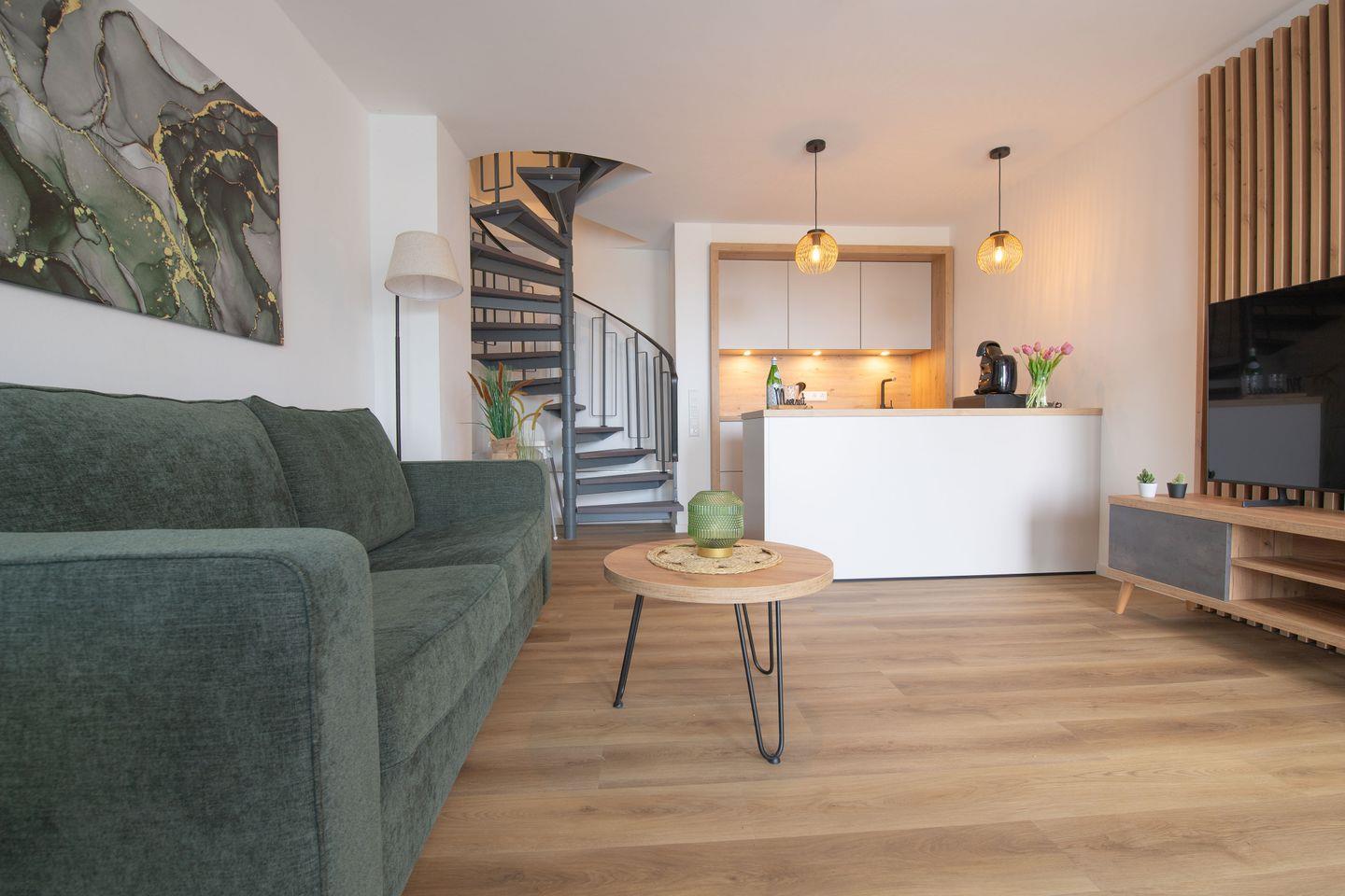 Willkommen in unserer exklusiven Ferienwohnung in Carolinensiel! Diese moderne Unterkunft bietet einladenden Komfort für einen Aufenthalt an der Nordseeküste. Genießen Sie die stilvoll eingerichtete offene Küche, das geräumige Wohnzimmer und das komfortable Schlafzimmer mit hochwertigen Möbeln und Designelementen.