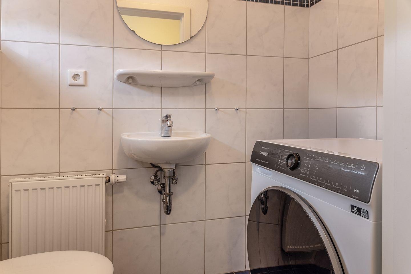 Offener Küchenbereich, Kinderhochstuhl, Gäste- WC, Waschmaschine und Trockner, Abstellraum, Terrasse mit Garten in West-Lage und Gartenmöbel.