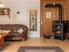 Helles, freundliches Wohnzimmer mit Kaminofen, Sat-TV, Radio, Ausgang zum Wintergarten sowie großen Garten, separate Küche mit Essplatz und Kinderhochstuhl.