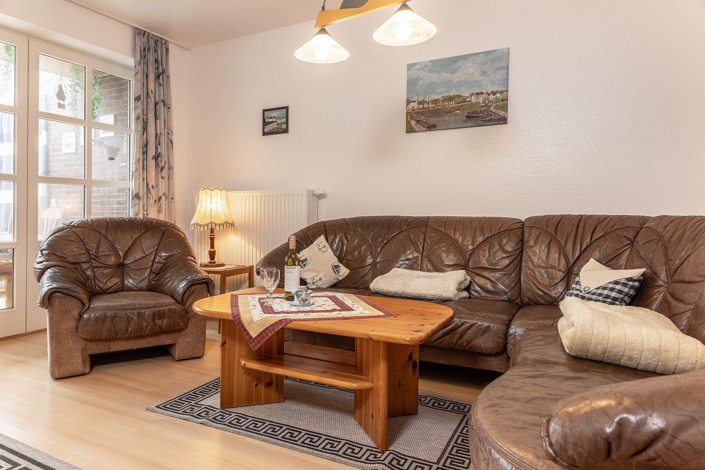 Gemütliche Erdgeschosswohnung in Carolinensiel mit Wintergarten, großem Garten und Kaminofen für erholsame Ferien.
