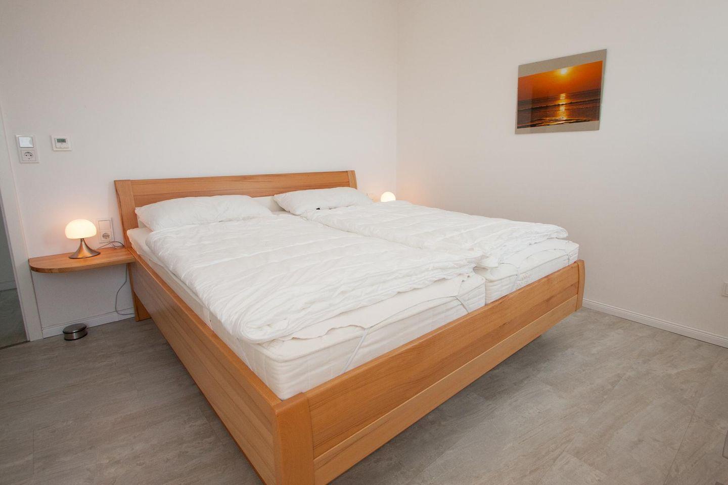 Ein Schlafzimmer mit Doppelbett 1,80x2,00m, in Komforthöhe