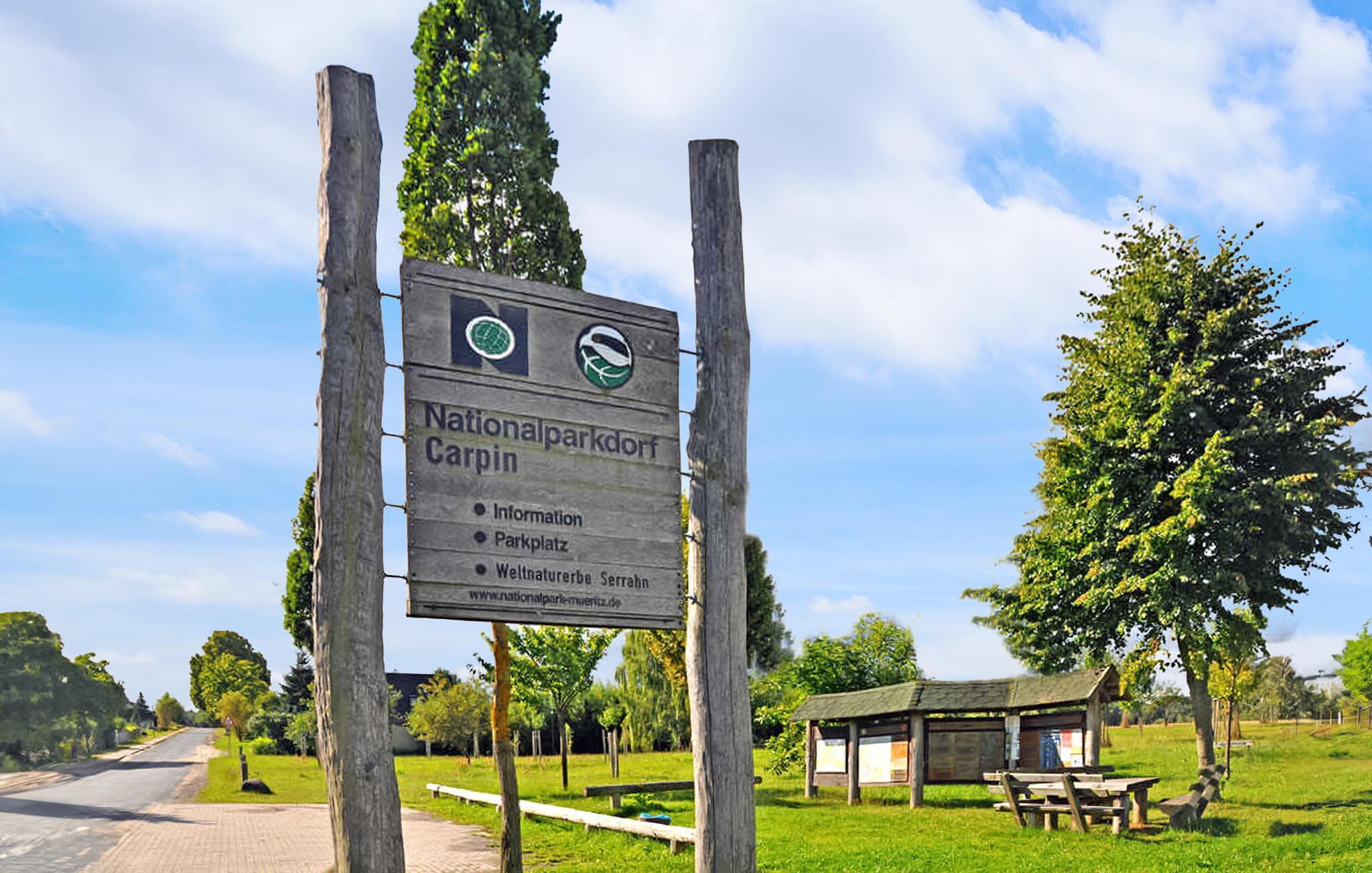 Carpin ist ein Ort zwischen der Residenzstadt Neustrelitz und der Stadt Woldegk inmitten der Mecklenburgischen Seenplatte, direkt an der B198. Rund um den Ort finden sich viele Seen mit schönen Badestellen und guten Angelmöglichkeiten. Carpin ist das Eingangstor zum Müritz-Nationalpark. Dort sind geführte Touren sowie Wanderungen möglich. Neustrelitz ist etwa 12 Kilometer entfernt, den Kurort Feldberg erreichen Sie nach circa 14 Kilometern. Dort gibt es zahlreiche Boots- und Fahrradverleihe. In Neustrelitz erleben Sie Kultur und Architektur mit dem historischen Schlosspark, dem Louisentempel, der Schlosskirche oder dem neu gestalteten Marktplatz. In beiden Orten gibt es zahlreiche Einkaufsmöglichkeiten und gastronomische Einrichtungen.