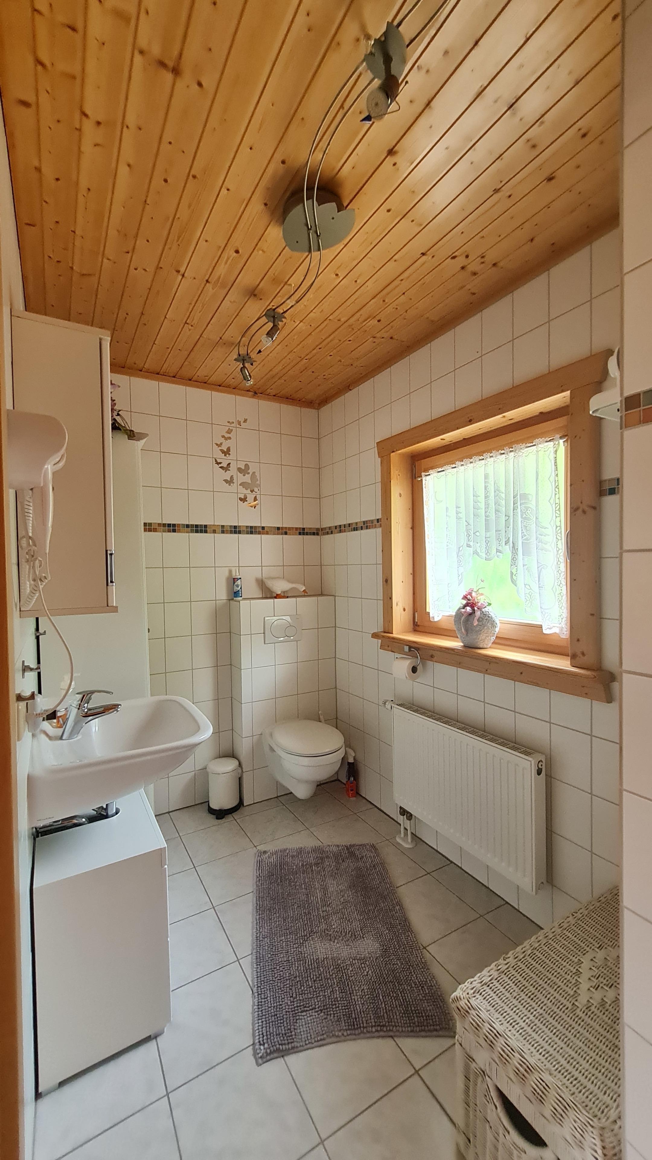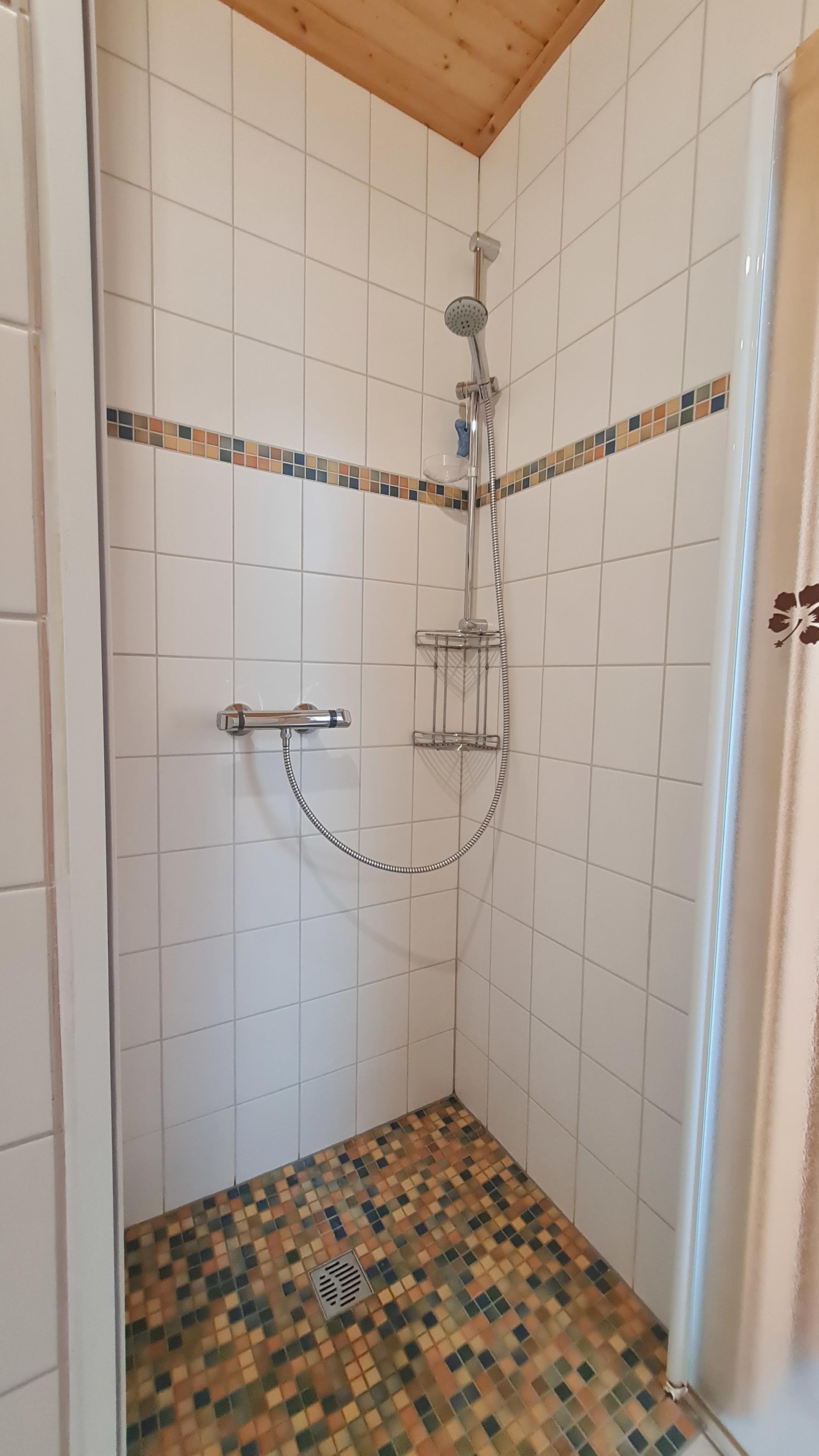 Das Badezimmer besticht durch seinen optimalen Schnitt und die ebenerdige Duschkabine.