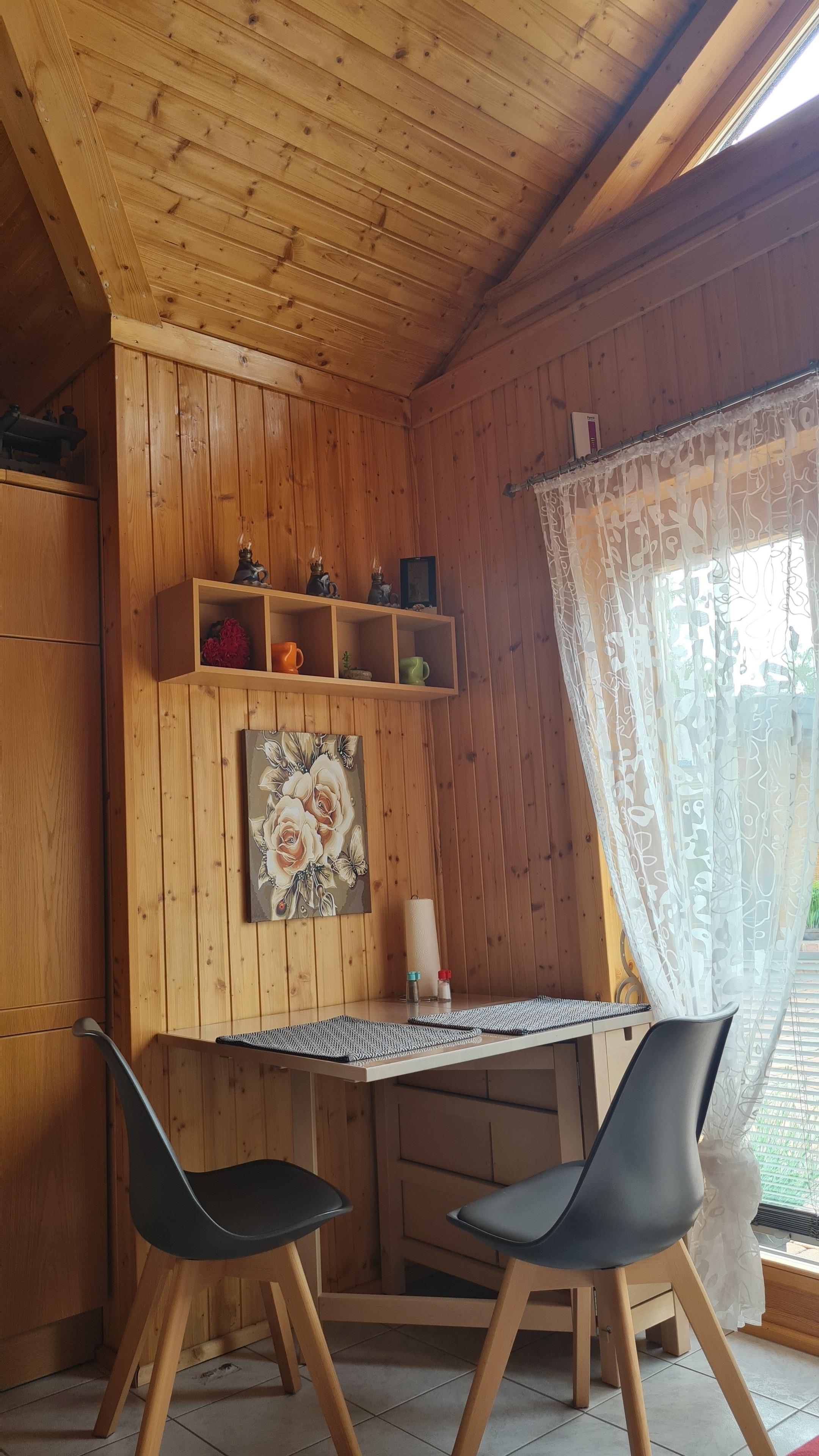 Das ca.43 qm große Haus ist ausgestattet mit einem Wohn-/Esszimmer, einer kompletten