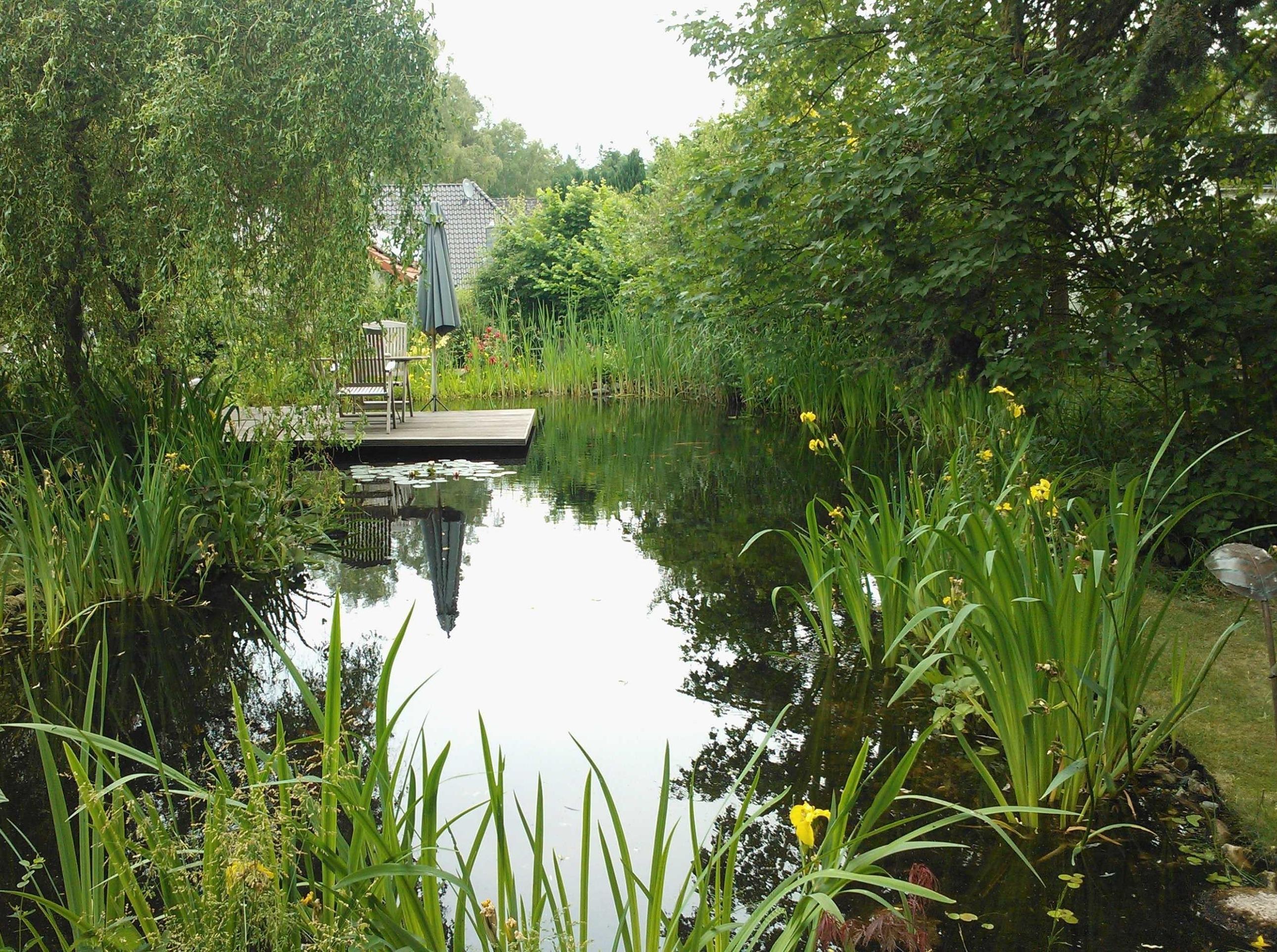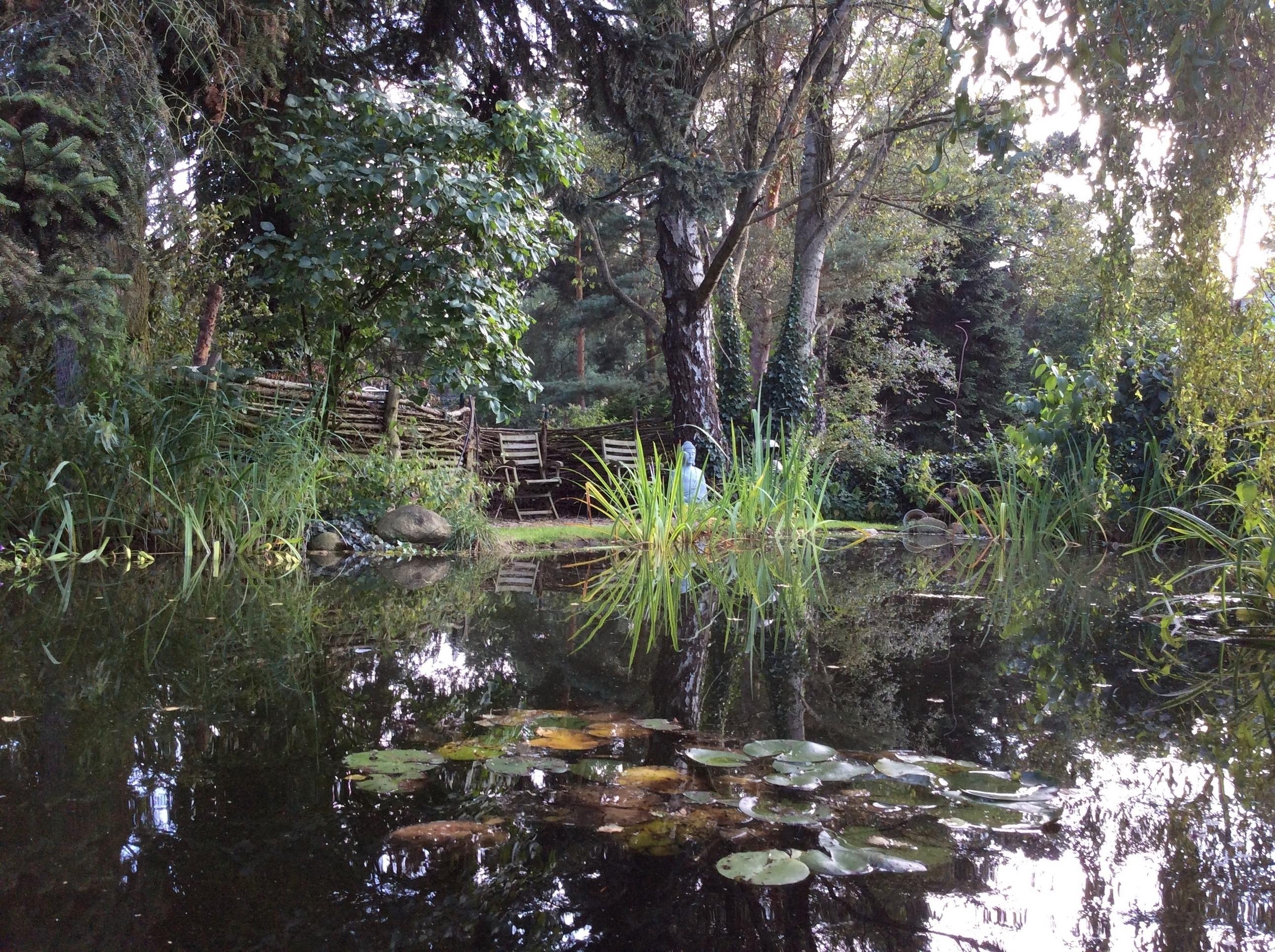 Studiowohnung im Grünen vor den Toren Celles - außer Natur nix, aber davon reichlich. Hier können sie absolute Ruhe finden, den Hühnern beim Leben zuschauen, im Schatten der Kastanie sitzen, am Steg die Fische füttern, sich im Schwimmteich abkühlen und sich von der Abendsonne beim Budda bescheinen lassen.