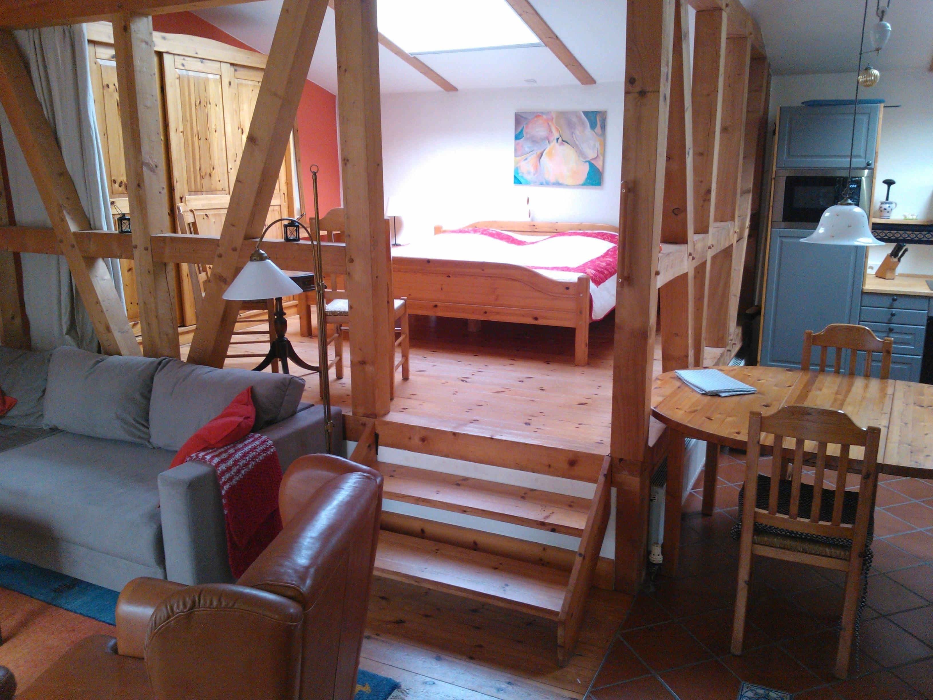 Es erwartet sie eine lichtdurchflutete Studiowohnung mit komfortablem Doppelbett, voll ausgestatteter Küche, kuscheliger Wohnecke, einem Duschbad mit Fußbodenheizung, separatem Eingang und eigener, zum Teil überdachter Terasse. Wer Ruhe Sucht, wird sie hier auf jeden Fall finden. Hunde sind ebenfalls willkommen.