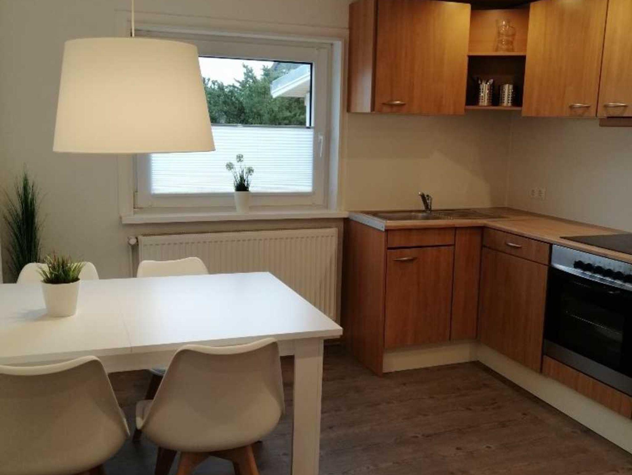 Im offenen Wohn- / Essbereich findet man eine komplette eingerichtete Einbauküche mit Backofen, Ceranfeld-Herd, Wasserkocher, Toaster, Kaffeemaschine, Mikrowelle, Kühl- und Gefrierschrank.