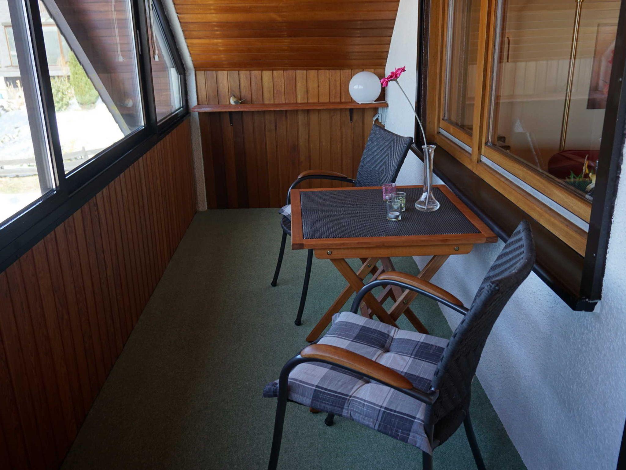 Vom Wohnzimmer aus haben Sie einen direkten Zugang zum verglasten Balkon. Balkonmöbel für 4 Personen stehen Ihnen zur Verfügung.