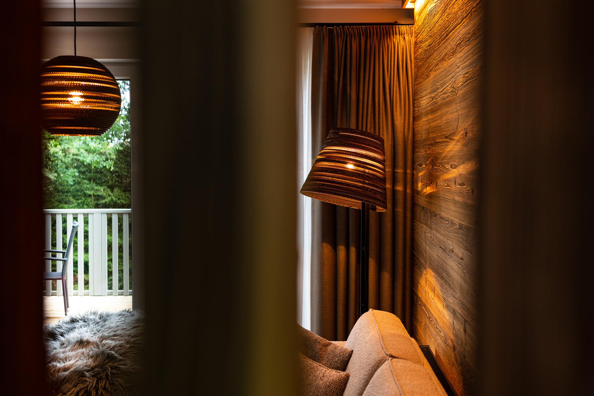 Unsere circa 90 m² große Alm-Chalets Premium für bis zu 4 Personen sind Ferienhäuser mit Balkon und Terrasse über 2 Etagen, mit Kaminofen, Sauna und Dampfdusche. Die private Sauna befindet sich im Bad mit großer Dampfdusche, WC, Waschmaschine und Föhn. Zusätzlich befindet sich ein separates WC im Erdgeschoss.