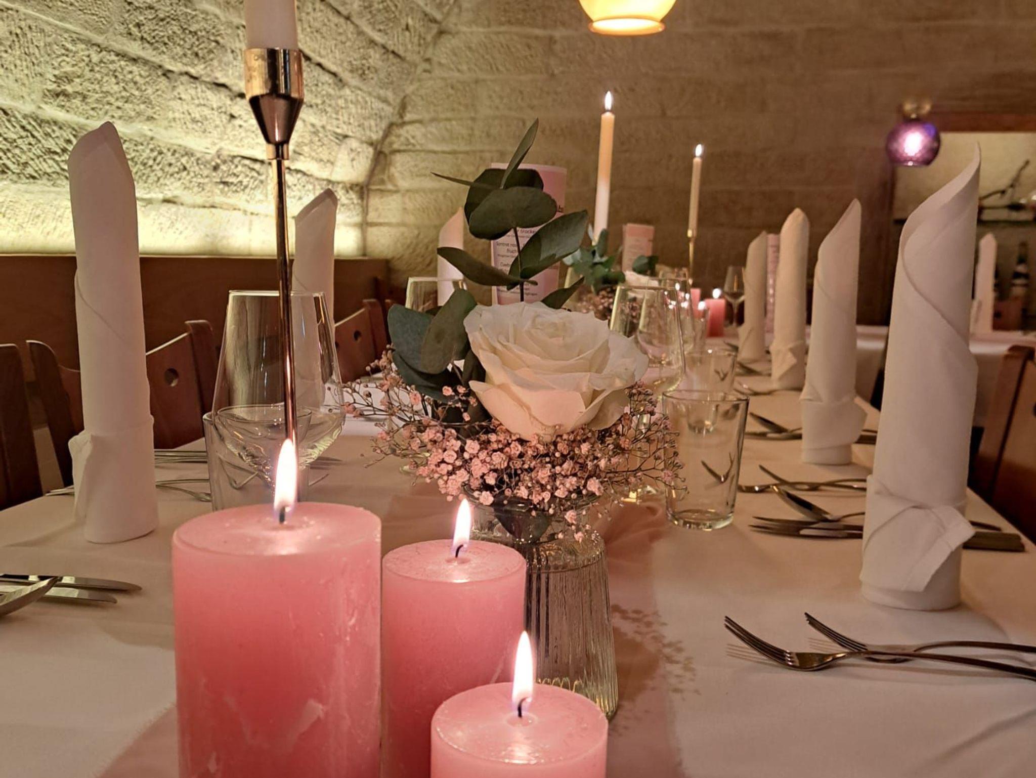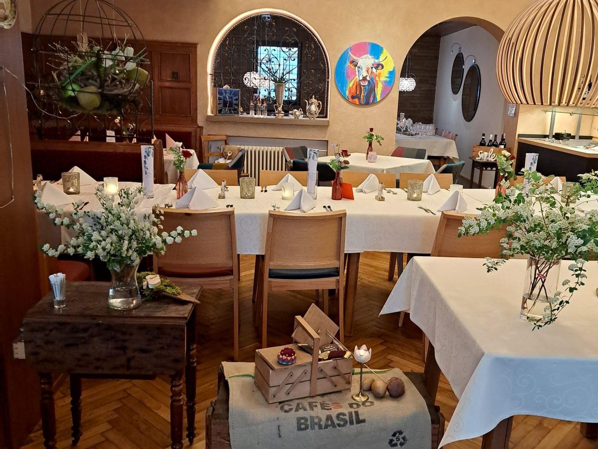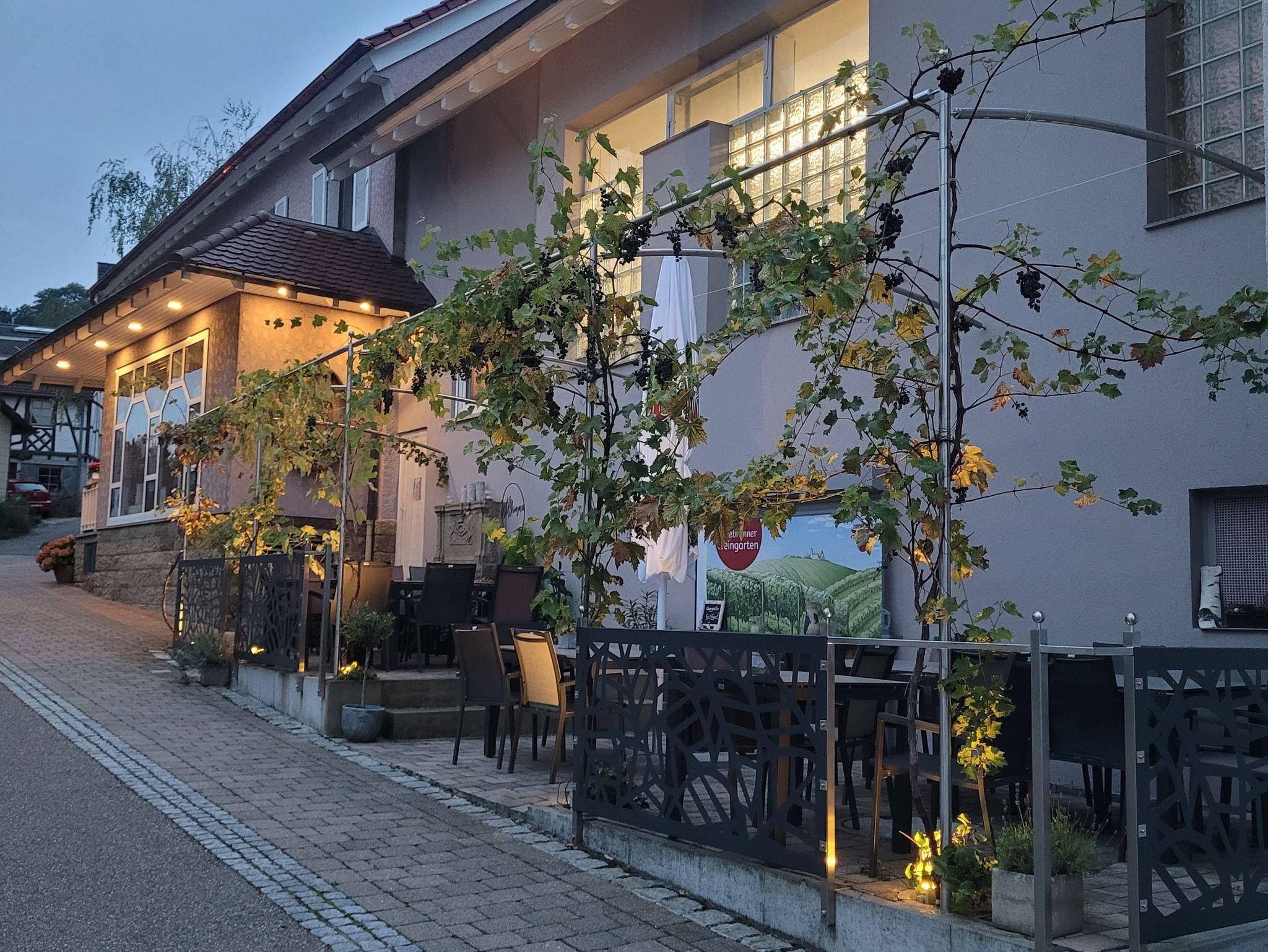 Direkt angrenzend liegt ein familiengeführter Gasthof mit Restaurant und Weingarten, der sich seit über 150 Jahren in Familienbesitz befindet. Im gemütlichen Restaurant sowie im Weingarten werden schwäbische Klassiker und internationale Gerichte frisch zubereitet und mit viel Liebe serviert. Auf Wunsch kann dort ein Frühstück hinzugebucht werden.