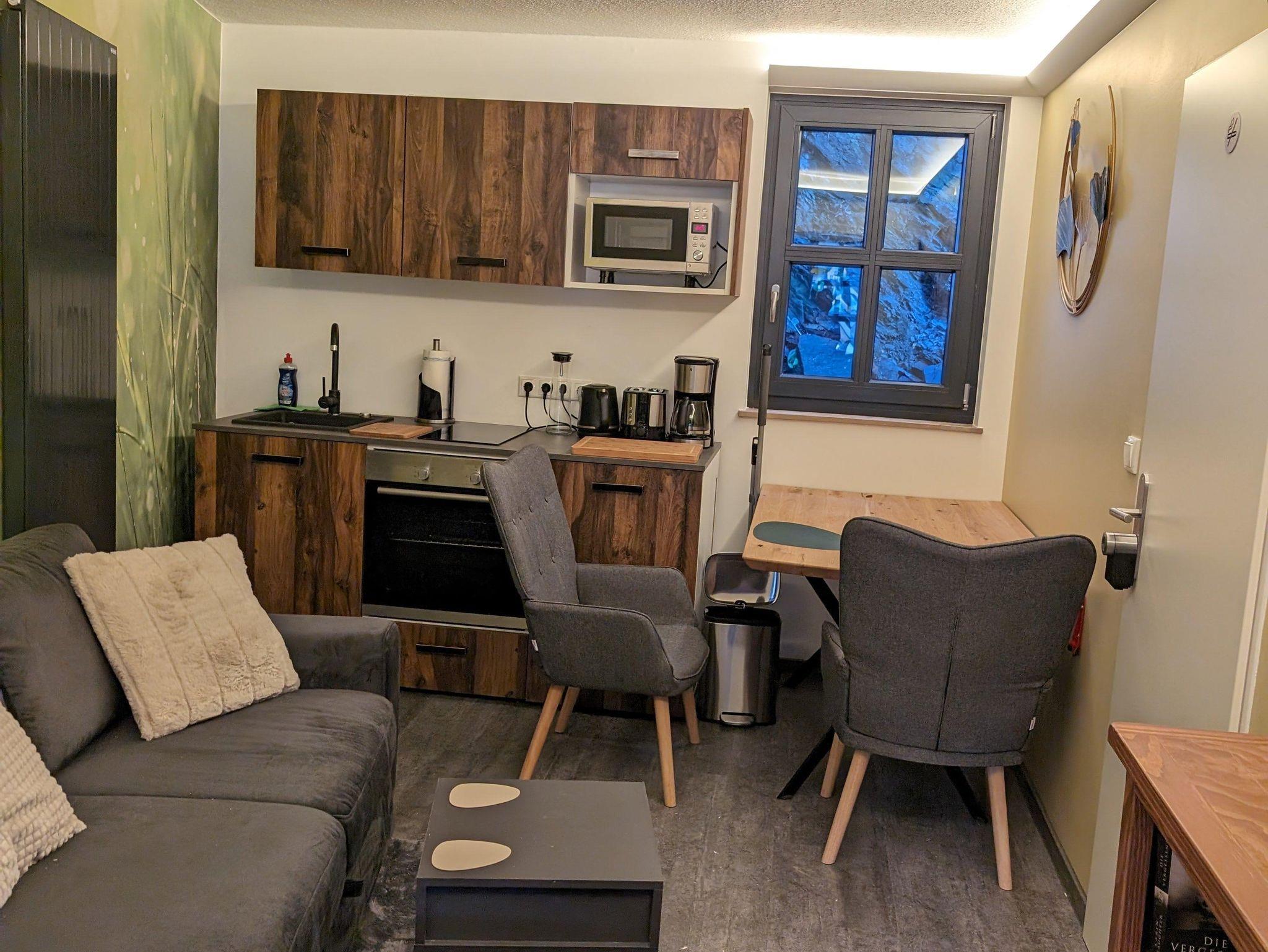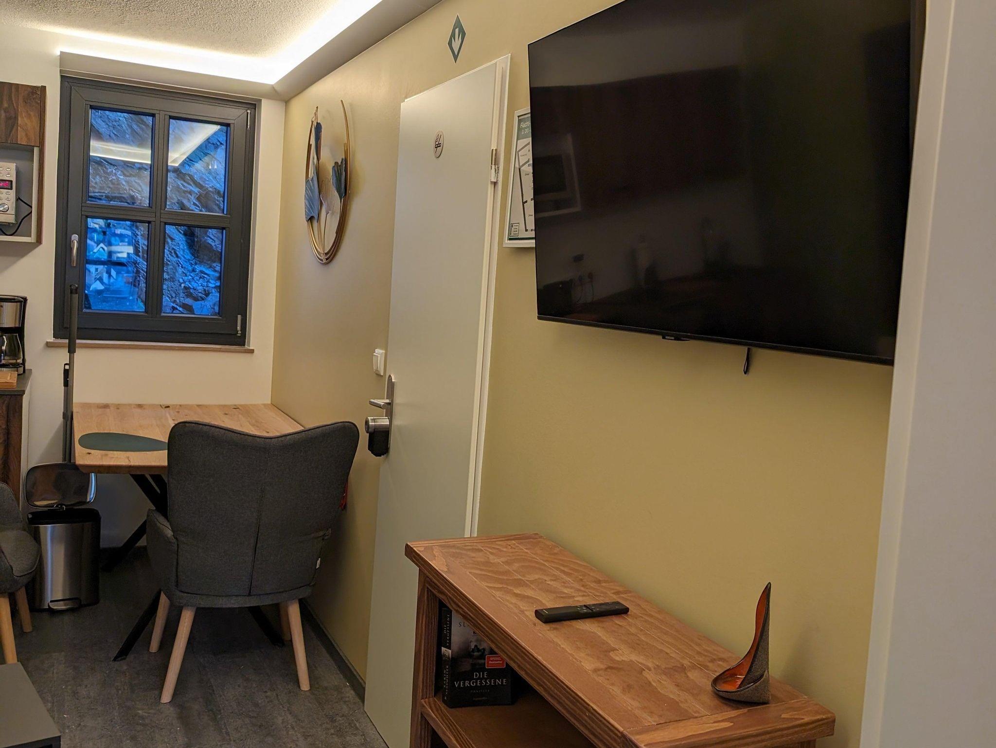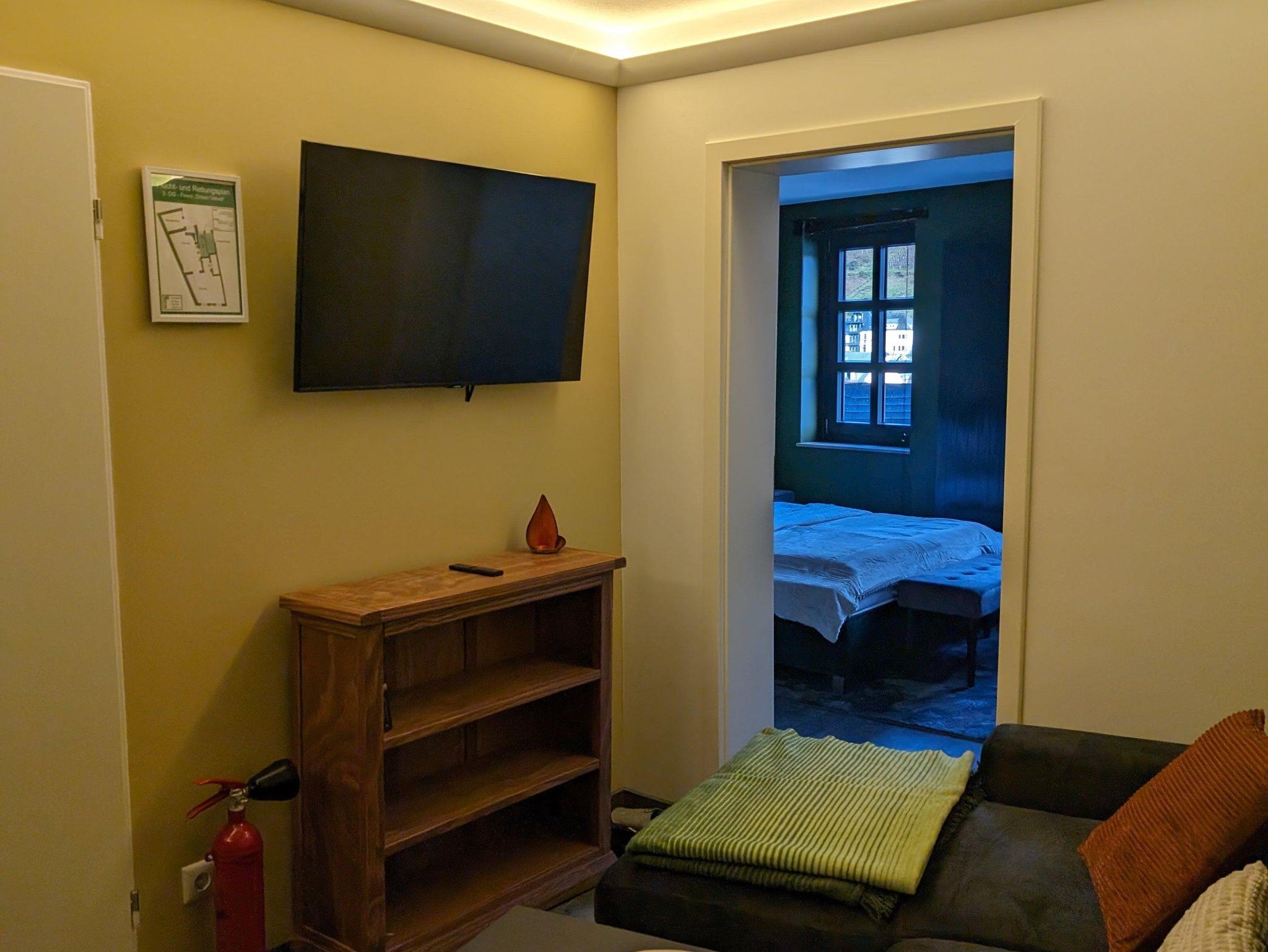 In den 3 oberen Etagen befindet sich eine Ferienwohnung mit 2 Räumen. Diese sind zwar klein aber liebevoll eingerichtet mit allem was das Urlauberherz begehrt. Schlaf- und Wohnzimmer / Küchenzeile / modernes Bad / WLAN / Smart-TV / Musikanlage