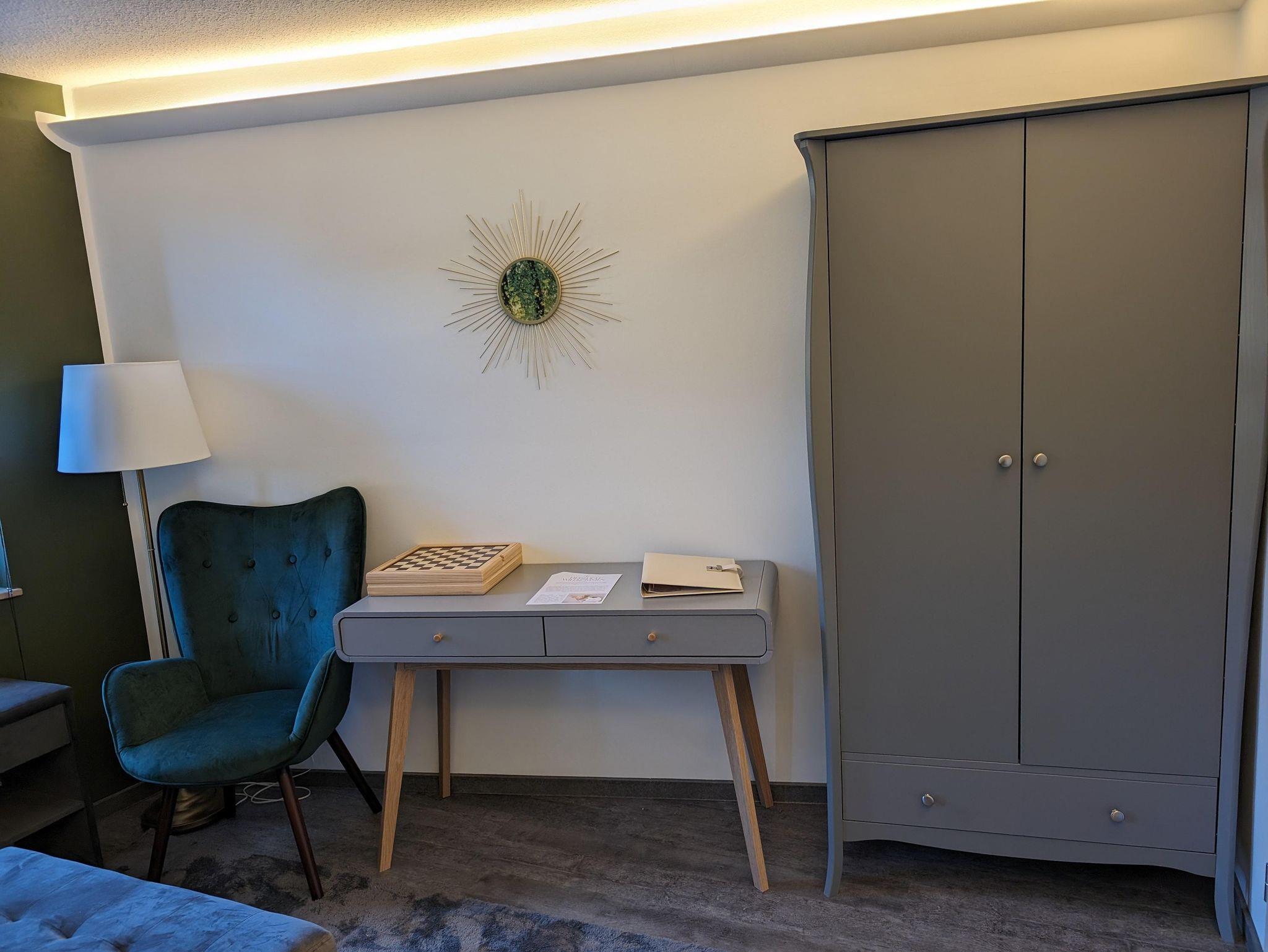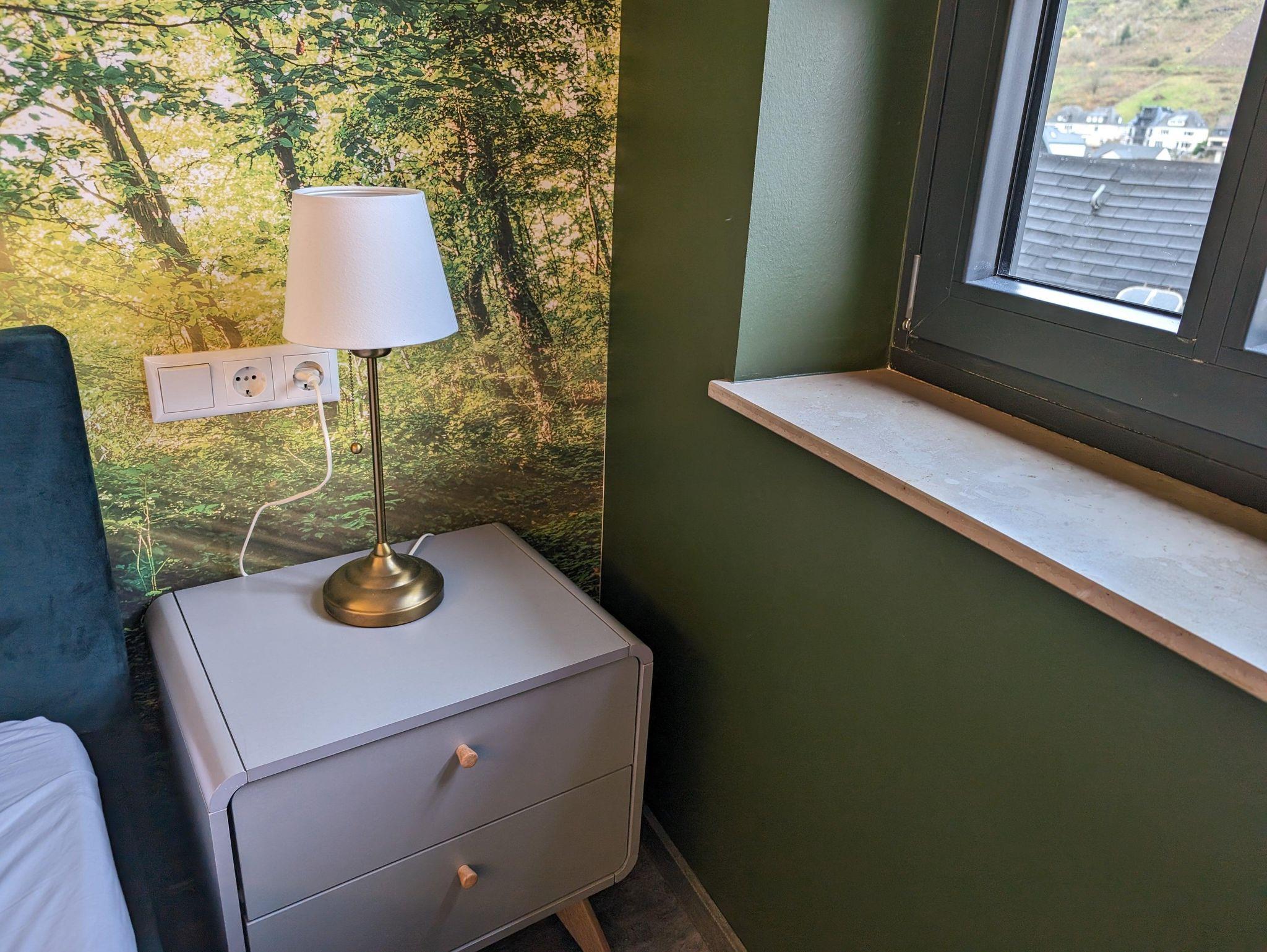 Die Fewo Green Velvet befindet sich im 3. OG und bietet nicht nur einen tollen Ausblick auf die Mosel. Die Einrichtung mit natürliche, erfrischenden Farben und Materialien und kuscheligem Interieur lädt zum Entspannen und Erholen ein. Das Schlafzimmer befindet sich zur Straßenseite hin. Trotz der zentralen Lage ist es aber so ruhig, dass einer entspannten Nachtruhe nichts im Wege steht. In der voll ausgestatteten Küchenzeile können Sie sich bei Bedarf selbst versorgen. Neben einigen Brettspielen gibt es einen Smart-TV und eine moderne Musikanlage zu Ihrer Unterhaltung. WLAN steht kostenfrei zur Verfügung. Das Bad hat moderne, wassersparende Vorrichtungen und Armaturen. Das Rauchen ist nicht gestattet. Haustiere sind nicht gestattet.