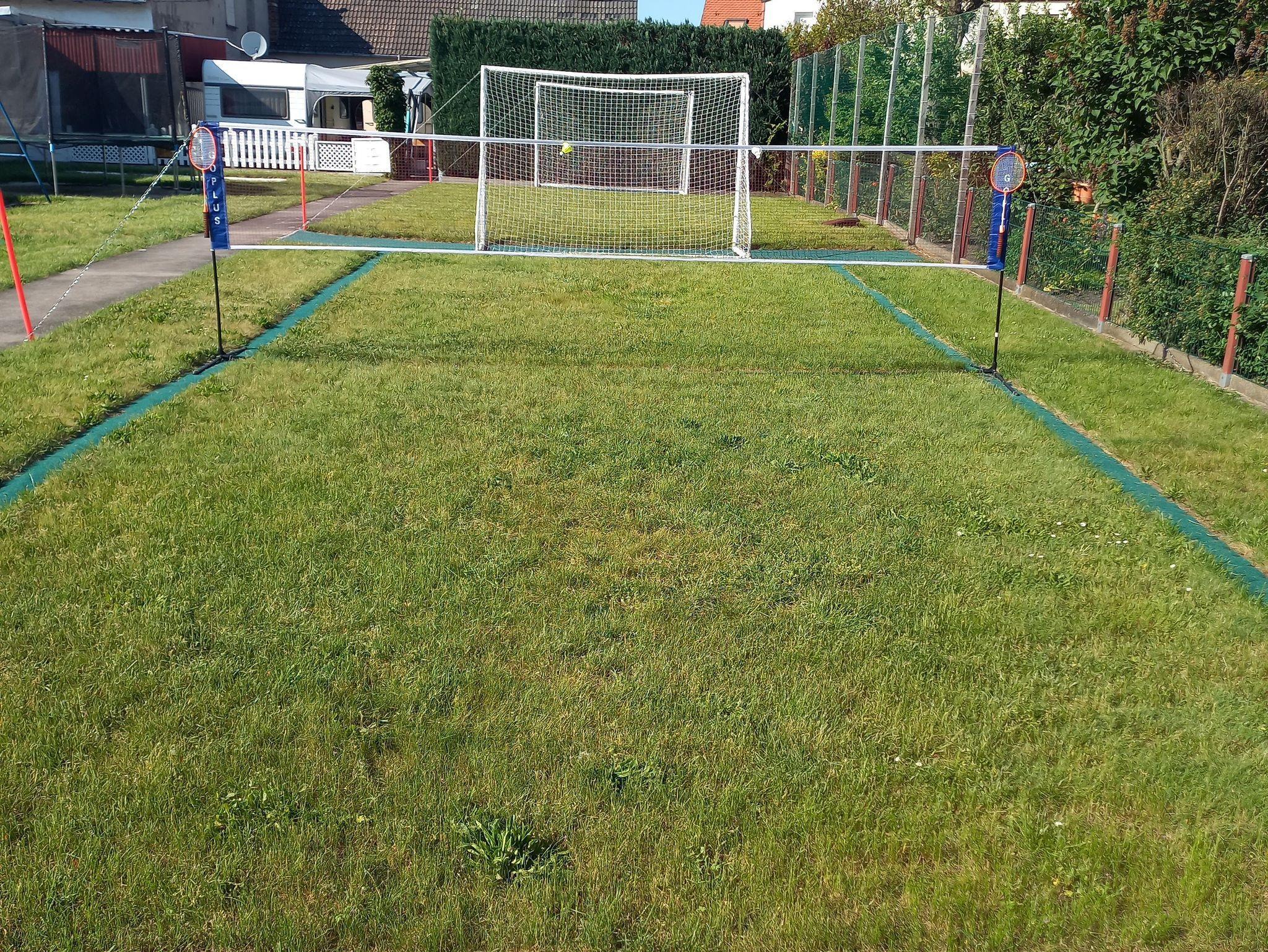 Wir bieten einen 600m² großen Garten und Spielbereich - ideal für Kinder und Hunde. Des Weiteren haben wir viele Spielemöglichkeiten für Kinder: großes Trampolin, Rutsche, Schaukel, 4 m² große Sand-Wasserspielplatz, große 200m² große Spielwiese für Fußball, Federball oder andere Ballspiele, Tischtennisplatte, Fußball-Kicker und bei kühlerem Wetter einen überdachten, beheizbaren Spielbereich mit viel Spielzeug zum spielen. Im Sommer stehen Fahrräder, Grill, Feuerkorb mit Holz und Liegestühle zur kostenfreien Mitbenutzung zur Verfügung.