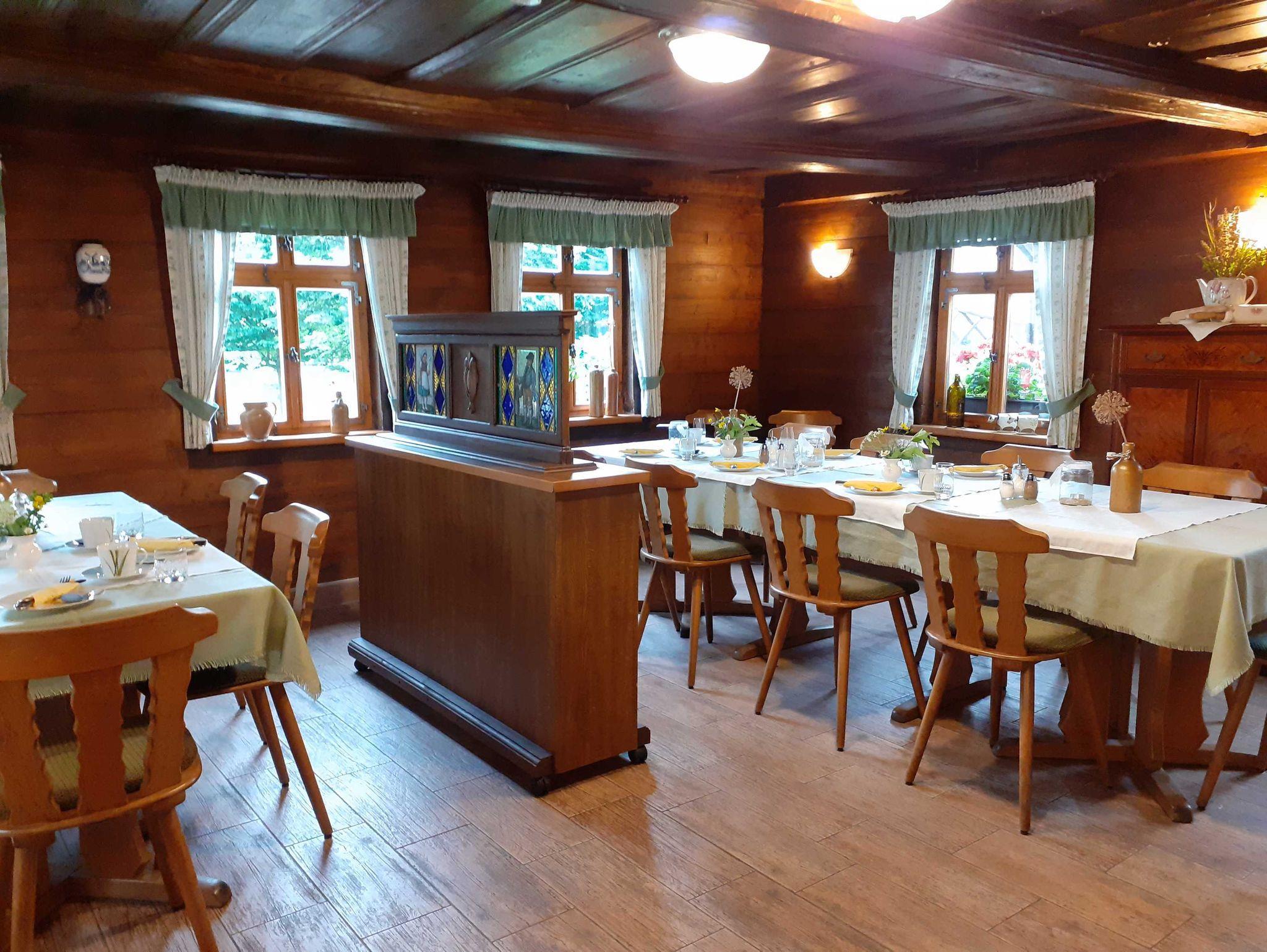 Für alle Gäste ist die Nutzung der voll ausgestatteten Küche gewährleistet. Diese befindet sich im gegenüberliegenden Gebäude vom Haupthaus, wo auch das Frühstück in der Guten Stube eingenommen werden kann. Ein Kühlschrank für die Gäste befindet sich in der Diele.