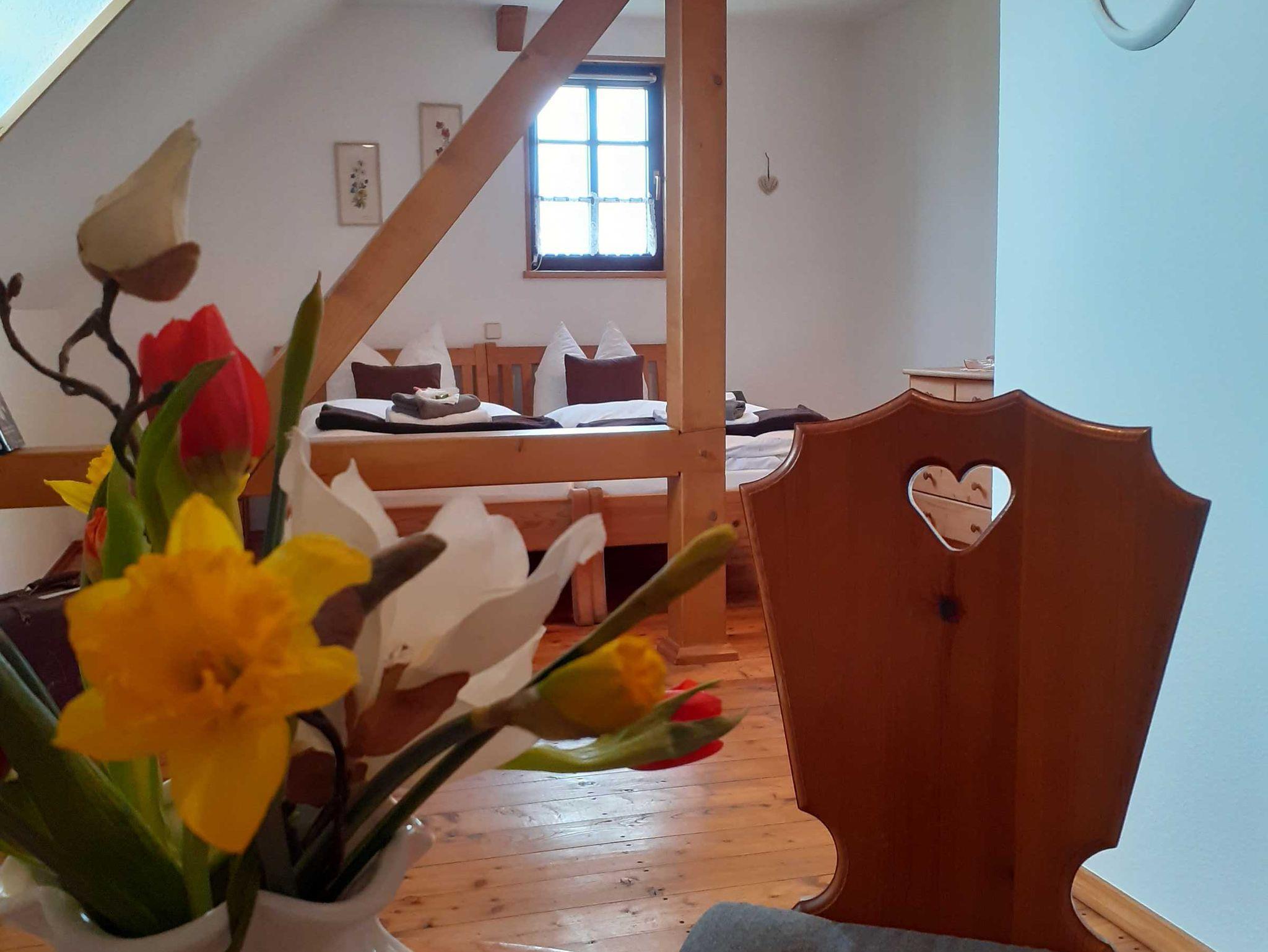 In der liebevoll ausgebauten und denkmalgerecht sanierten Scheune stehen Ihnen 10 Übernachtungsplätze, davon 4 Doppel- und 1 Einzelzimmer zur Verfügung.