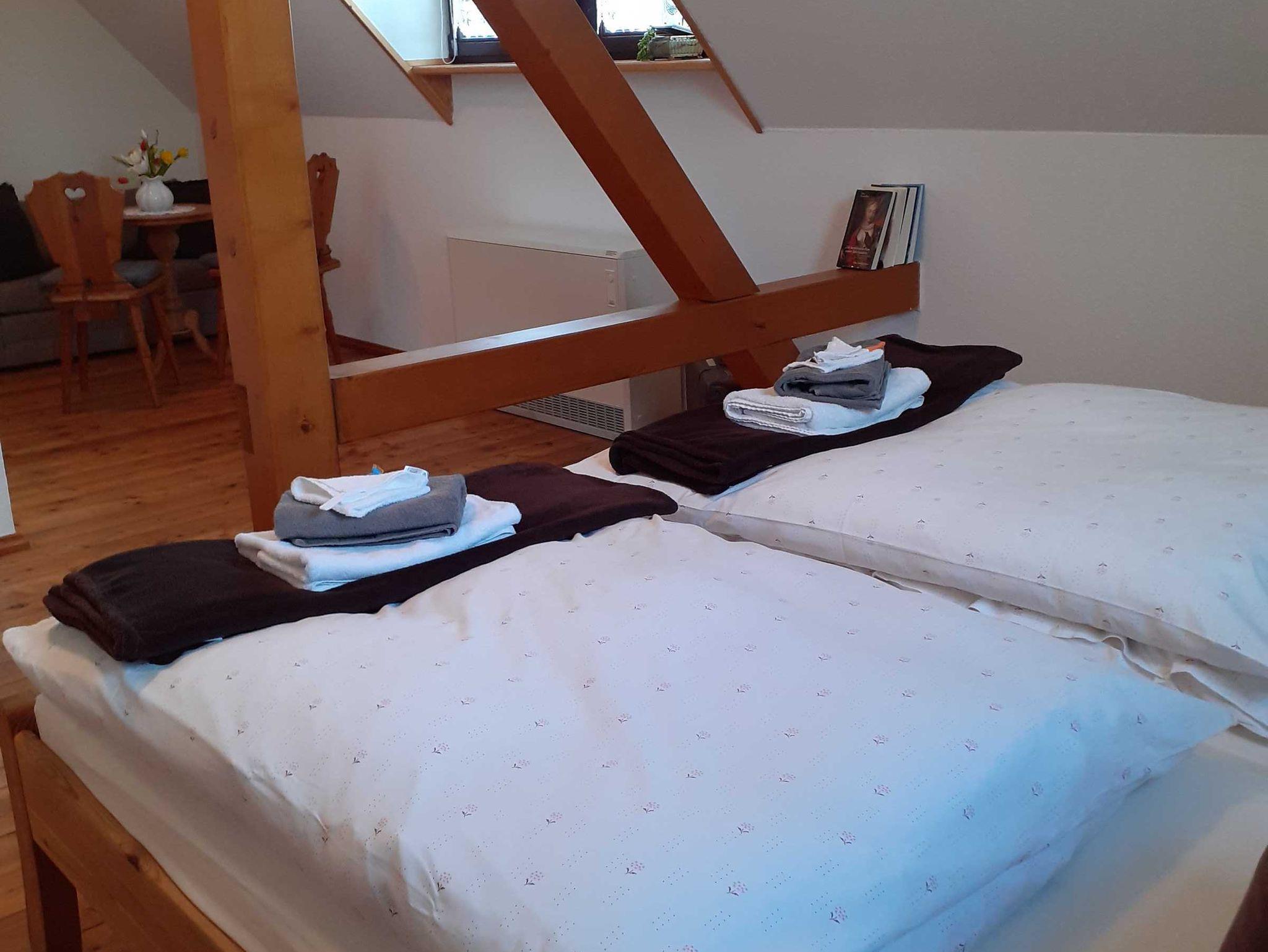 Es besteht die Möglichkeit, dass das Doppelzimmer Dorfblick als Twin- Zimmer umgestellt werden kann.