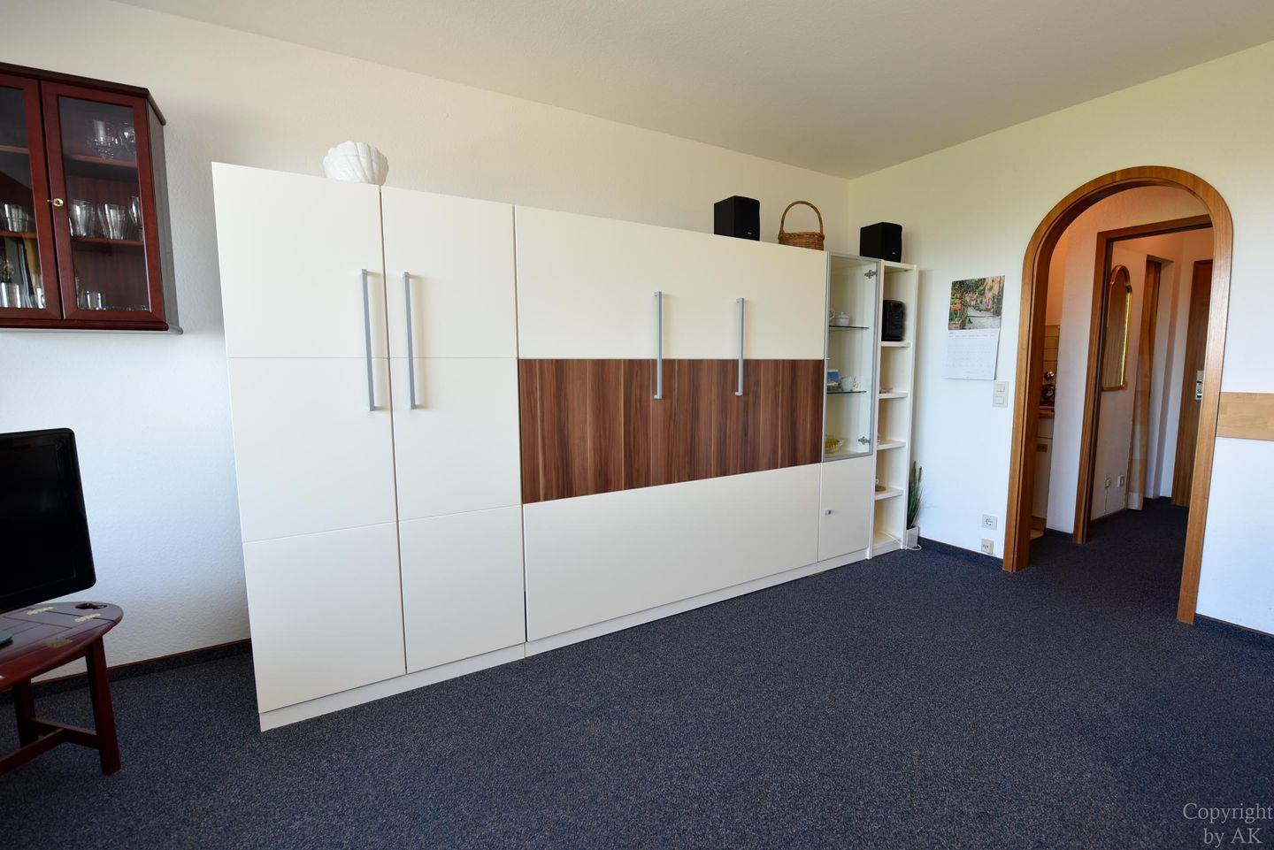 1-Zimmer Appartement im 3. OG mit großem Balkon und toller Sicht auf den Weltschifffahrtsweg. Komfortable Einrichtung für 2 bis 3 Personen. Im Wohn-/ Schlaf-/ Essbereich befindet sich u.a. ein Schrankbett, ein Schlafsofa und ein Glastisch, sowie ein Esstisch mit dazugehörigen Stühlen. Zudem verfügt das Appartement über eine separate Küchennische. Das Bad ist mit einem Wannenbad und einem WC ausgestattet. Der kostenlose Tiefgaragenstellplatz hat eine Einstellhöhe bis 195cm.