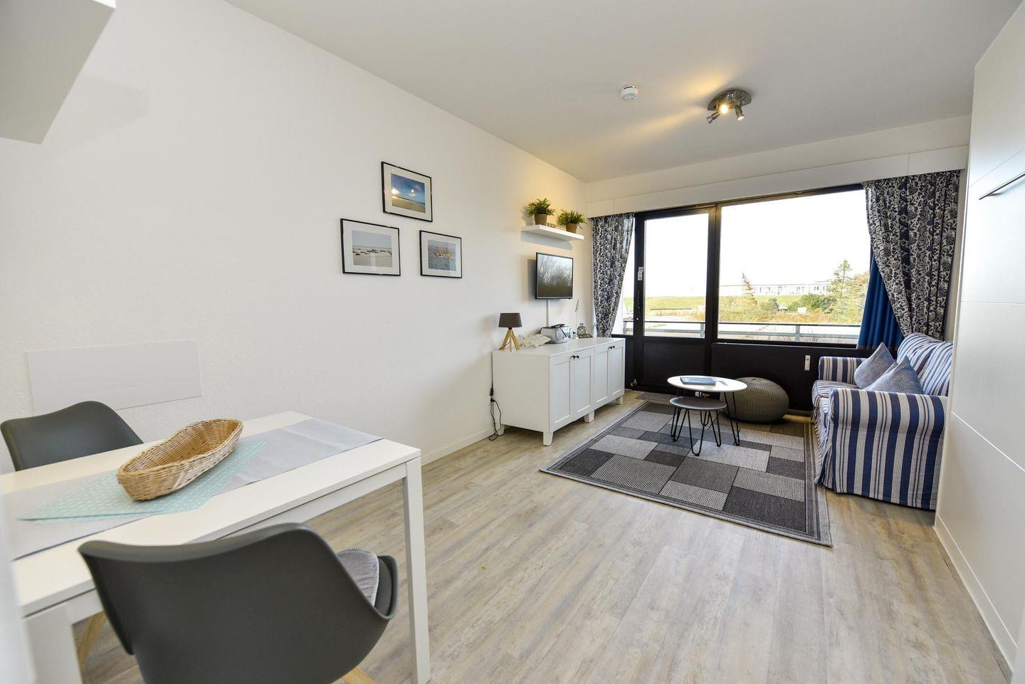 Gemütliches 1-Raum-Appartement mit Balkon, WLAN und Tiefgaragenstellplatz nahe dem Döser Sandstrand.