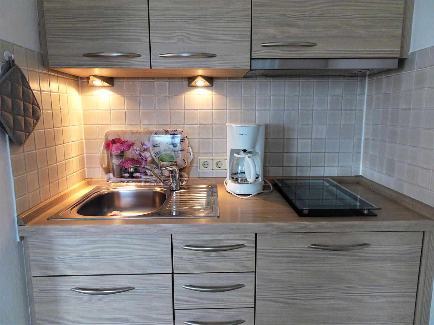Allergikerfreundliches 1-Zimmer "Romantik" Appartement im 3.OG mit Südbalkon (nicht barrierefrei). In dem Wohn-/Schlafraum befindet sich ein gemütliches Doppelbett (160cmx200cm), zwei gemütliche Sessel mit einem Rolltisch sowie eine Küchenzeile mit einem Esstisch und zwei Stühlen. Das Appartement verfügt über ein Dusch-Wannenbad mit WC. Ein kostenloser PKW-Stellplatz sowie kostenfreies WLAN stehen zur Verfügung.