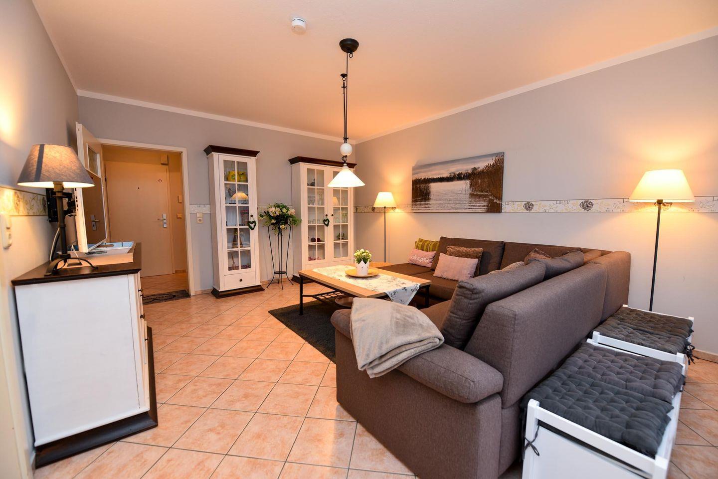 Die Wohnung verfügt über einen geräumigen Wohn-/ Schlafraum mit einer gemütlichen Schlaflandschaft. Zusätzlich stehen Ihnen zwei separate Schlafräume zur Verfügung. Die Küche mit Küchenzeile ist bestens ausgestattet mit einem Kühlschrank ***, Mikrowelle und Geschirrspülautomat. Der Esstisch mit 6 Stühlen bietet ausreichend Platz für gemeinsame Mahlzeiten.