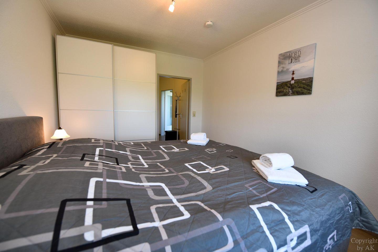 Das Appartement verfügt über ein geschmackvoll eingerichtetes Schlafzimmer mit einem Doppelbett, das Ruhe und Erholung verspricht.