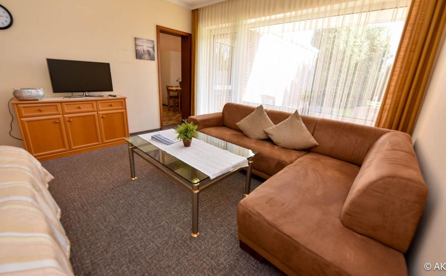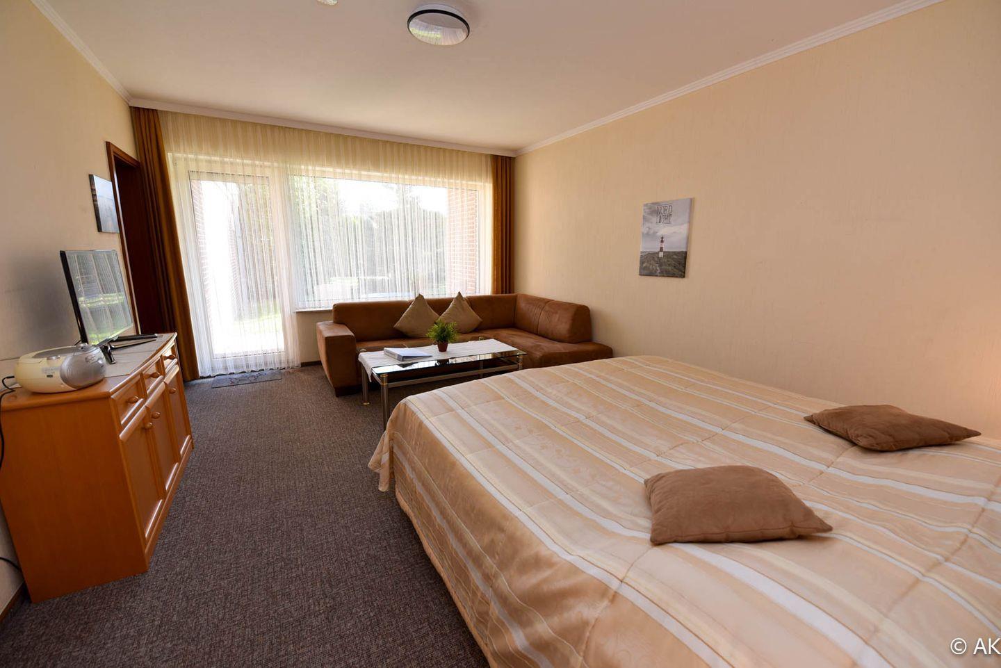 1-Zimmer-Ferienwohnung im Erdgeschoss des Hauses LEE mit kostenfreiem WLAN. Die Wohnung besteht aus 1 Wohn-Schlafraum mit Ehebett, Sessel und Couch. Ein Küchenraum mit Einbauküche, Geschirrspüler und Backofen. Hier finden Sie auch einen Esstisch, Stühle und eine Mikrowelle. Wannenduschbad/WC, Kabel-TV, Terrasse, Spielrasen, Spielgerät und Sandkiste auf dem Grundstück, PKW-Stellplatz. Schwimmbadnutzung kostenfrei!