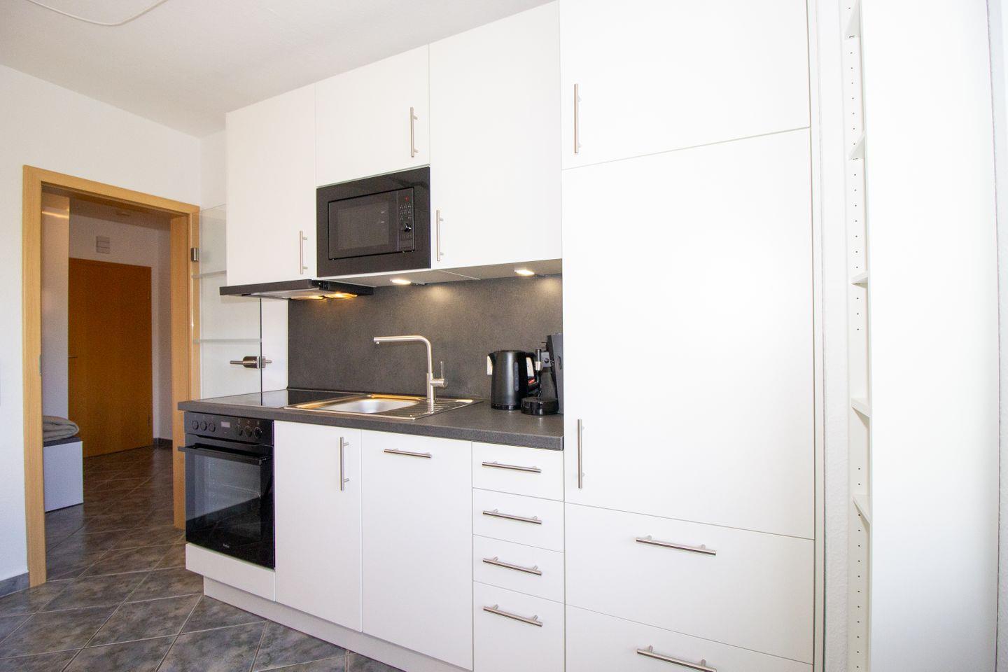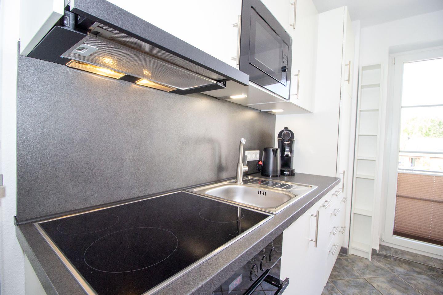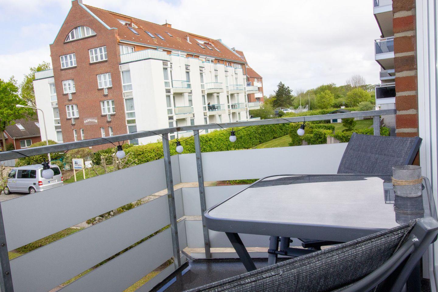 Es gibt einen Balkon vom Wohnbereich mit Blick auf die ruhige Sackgasse. Genießen Sie hier die Nachmittags/Abendsonne und lassen den Tag entspannt ausklingen.