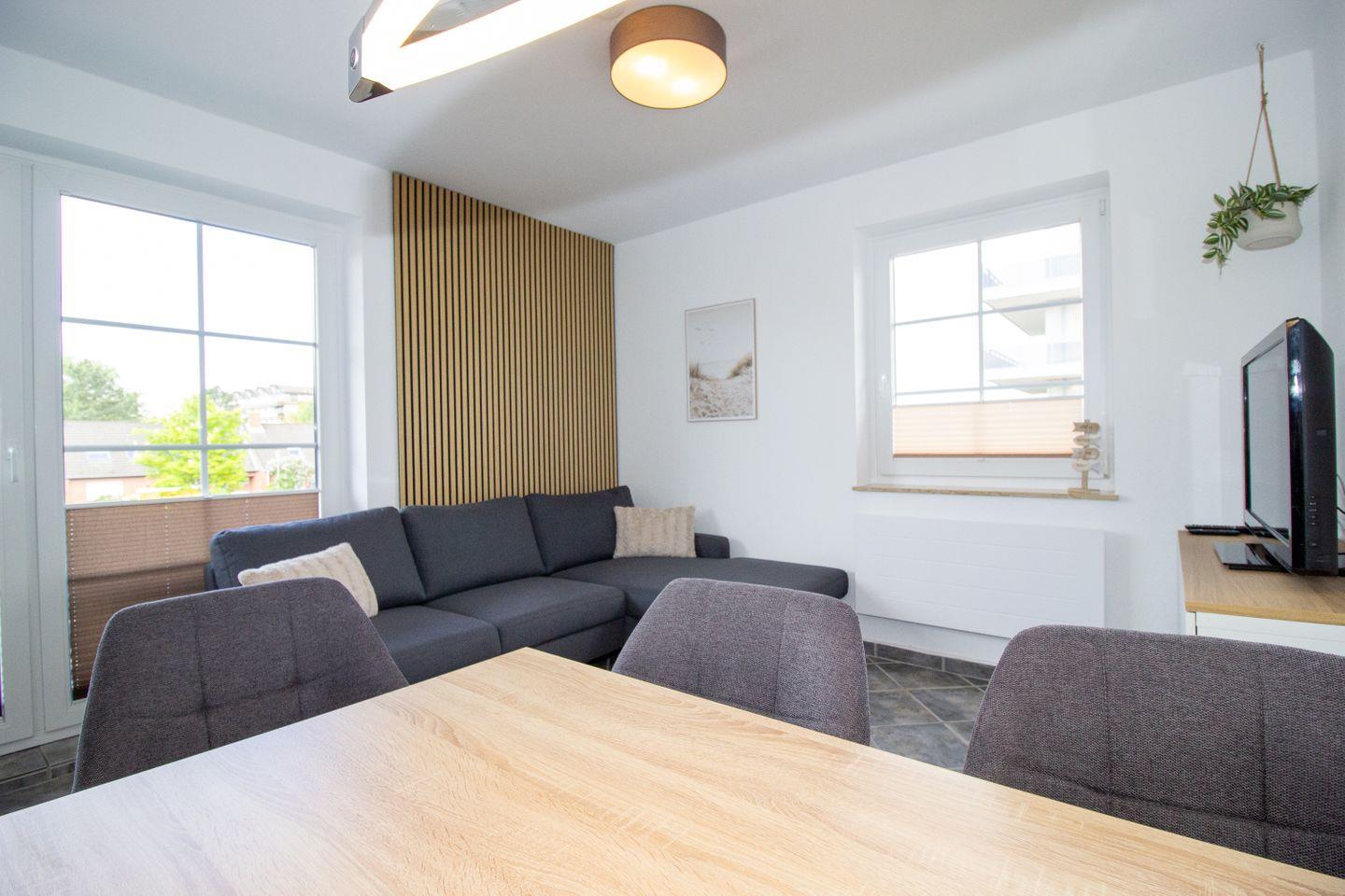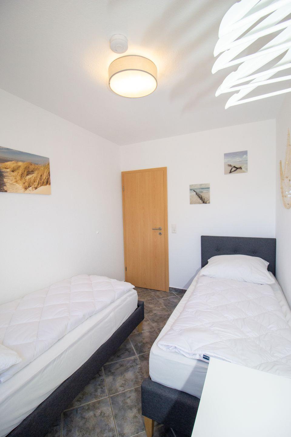 Haus "Residenz Vogelsand", App. Nr. 20, 1. Etage, bis zur 5 Personen (davon maximal 4 Erwachsene) ca. 47m², Süd-Westseite (kein Meerblick), Schlafzimmer mit Doppelbett (180 x200 ) und TV-Gerät, 2. Schlafzimmer mit 2 Einzelbetten (je 90 x 200) , Wohn-Essbereich mit Schlafsofa (140 x 200) mit offener Küche, CD-Spieler,Küche mit Backofen, Geschirrspüler, Mikrowelle und 4 Platten-Induktion, Dusche/WC, Haartrockner, 1 Balkon, Kabel-TV, Radio, WLAN, Haustiere sind nicht gestattet, Nichtraucherappartement, Außenstellplatz