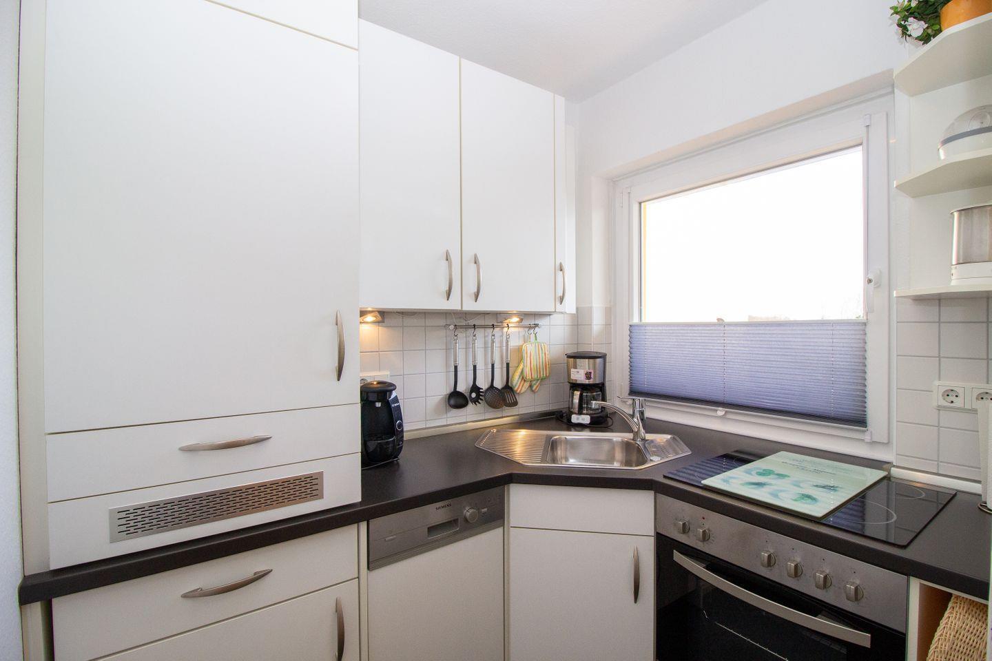 Strandhochhaus Döse, 3.te Etage, Whg. Nr. 20, bis 2 Pers., ca. 45 qm Größe, durch Baumkronen eingeschränkter Meerblick, ca. 100 m zum Sandstrand Döse, kombinierter Wohn-Schlafbereich mit Doppelbett, sep. Küche mit 4-Platten-Ceranfeld, Geschirrspüler und Backofen, Badewanne mit Duschabtrennung und WC, Balkon, WLAN, Aufzug im Haus, Haustiere nicht gestattet, Nichtraucherwohnung, Pkw-Stellplatz am Haus, Strandkorb im Sommer 2025