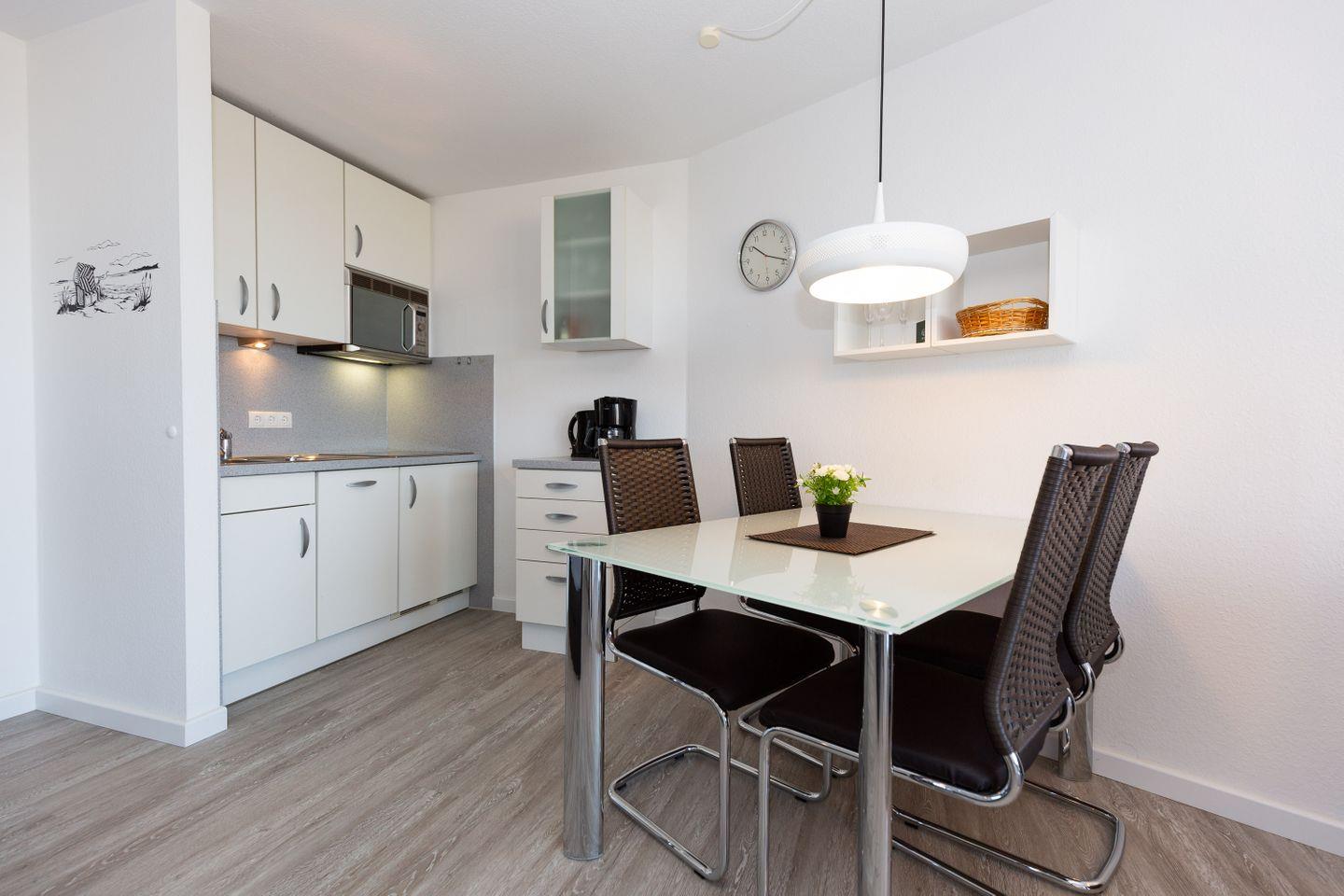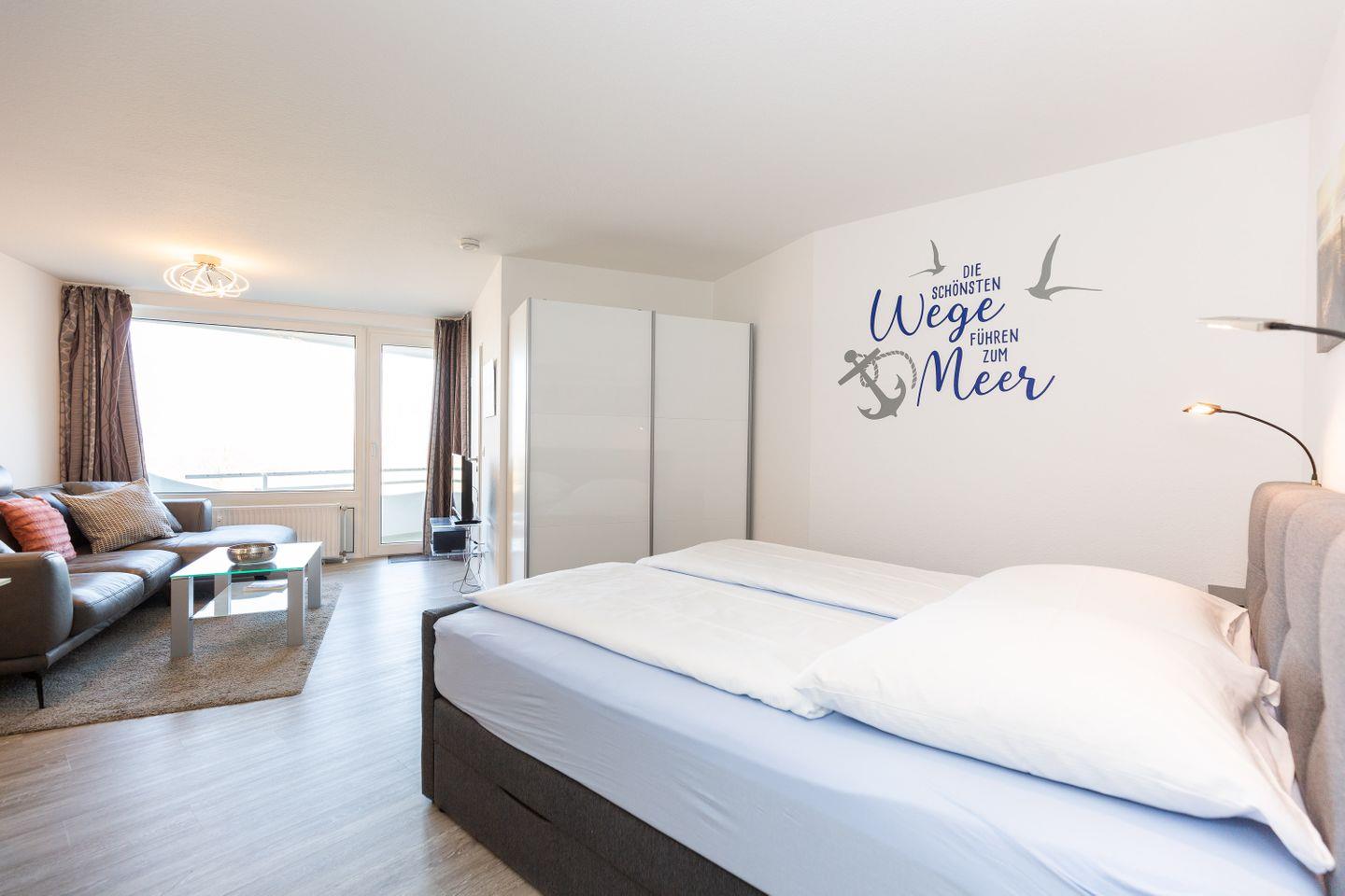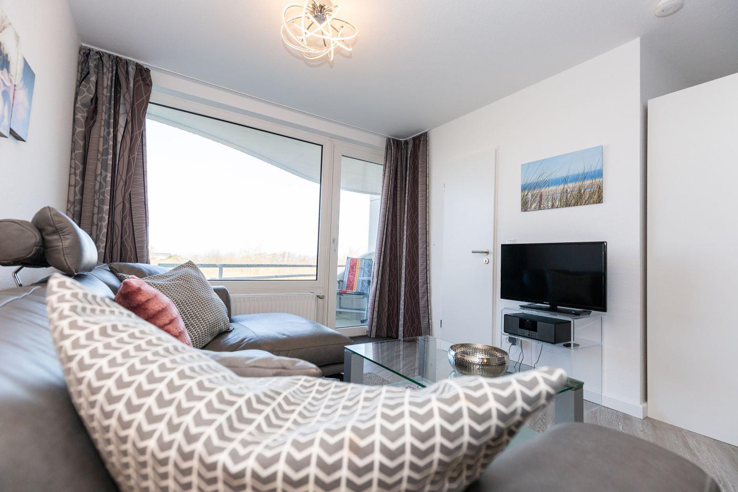 Die 2-Zimmer-Ferienwohnung für 4 Personen befindet sich in direkter Strandnähe. Die moderne Einrichtung mit grauem Sofa und hellem Bodenbelag kreieren ein elegantes Bild. Ein Westbalkon lädt zum Beobachten farbenreicher Sonnenuntergänge ein. Die Kugelbake an der Elbmündung, der Miniaturgolfpark Döse und der Zoo im Kurpark Döse sind in wenigen Gehminuten zu erreichen. Von der Aussichtsplattform "Alte Liebe" können Sie die großen Schiffe bestaunen oder selbst an einer Schifffahrt zu einem der vielen Ausflugsziele in der Umgebung teilnehmen.