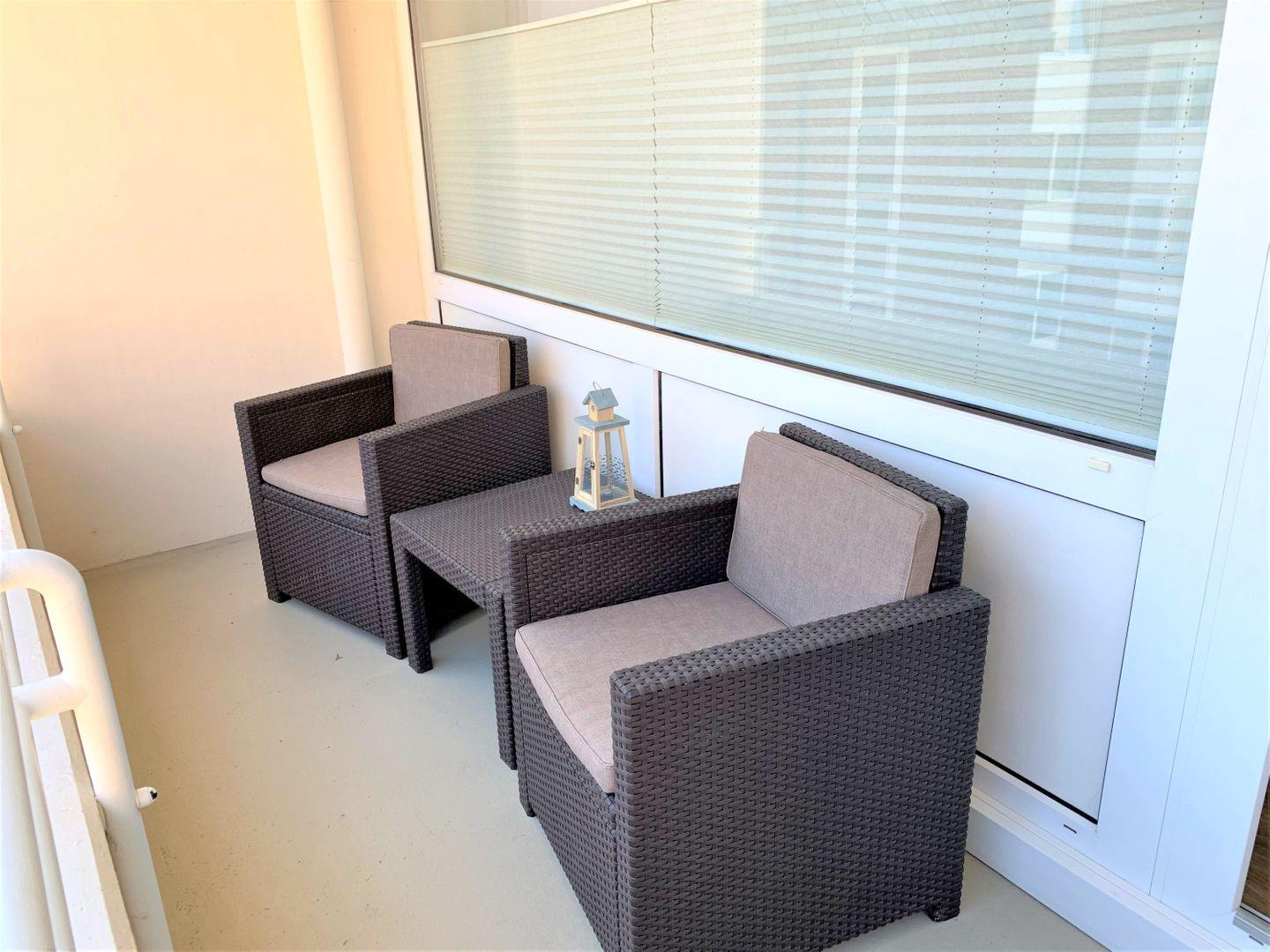 Der möblierte Balkon lädt ein, bei einem entspannten Frühstück unter freiem Himmel in den Urlaubstag zu starten. Hier haben unsere Urlaubsgäste die frische Nordseeluft um sich.
