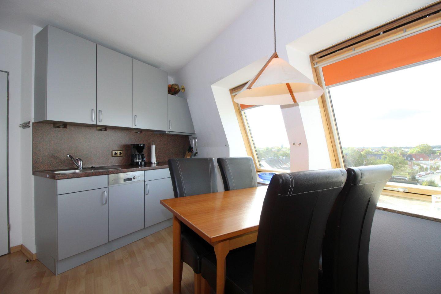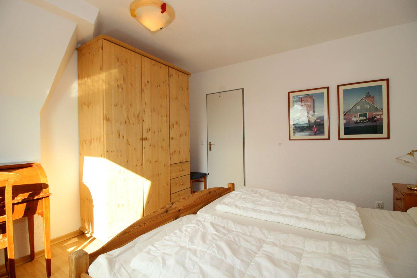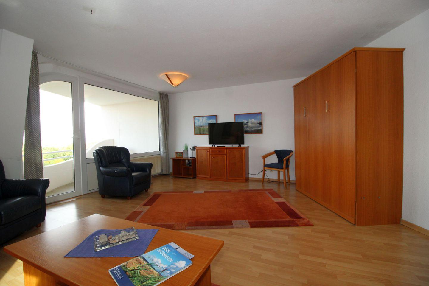 Haus "Trafalgar", Typ B, App.-Nr. 427, bis 4 Personen, 4. Etage, ca. 56 qm, Westseite (Meerblick), Wohn/Schlafraum mit Schrankbett, separates Schlafzimmer mit Doppelbett, Küchenzeile mit Ceranfeld, Geschirrspüler, Dusche/WC, Balkon, Kabel-TV, kostenl. W-Lan im App, Nichtraucherwohnung, Haustiere sind nicht gestattet, Tiefgaragenstellplatz, Strandkorb im Sommer 2025.