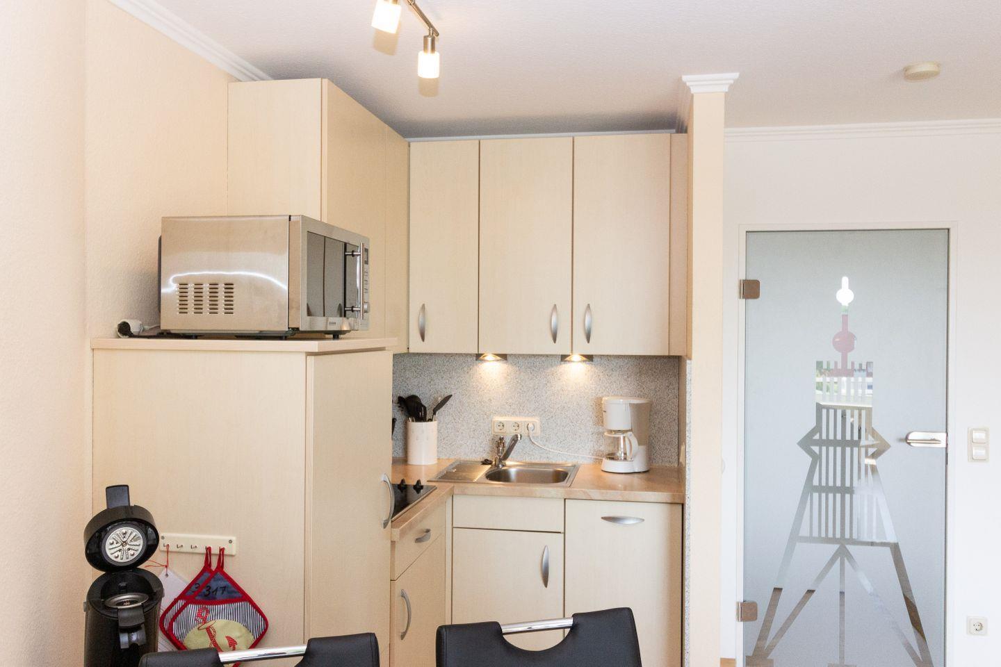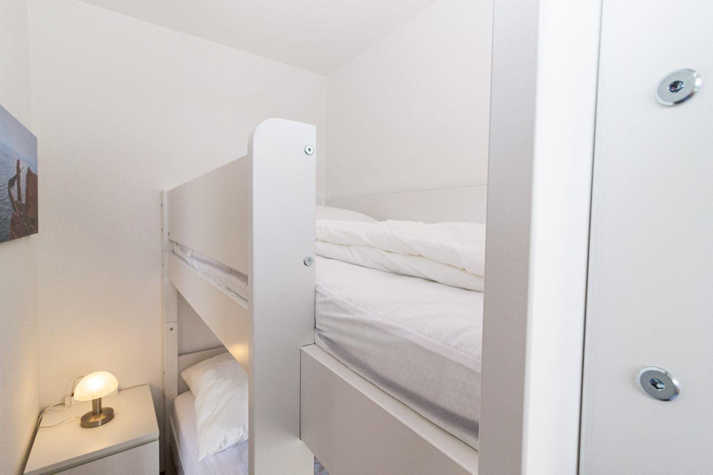 Haus "Lord Nelson", Typ 2, App. Nr. 317, bis 4 Pers., ca. 40 qm, Ostseite, eingeschränkter seitlicher Meerblick Richtung Elbe/Weltschifffahrtsweg, Wohnbereich mit Schrankbett, sep. Schlafzimmer mit Etagenbett, Dusche/WC, Küchenzeile mit Geschirrspüler, großes Ceranfeld und Mikrowelle, Balkon, Kabel-TV, Wlan über eigenen Router, Tiefgaragenstellplatz, Nichtraucherapp., Haustiere erlaubt, Strandkorb im Sommer 2026.