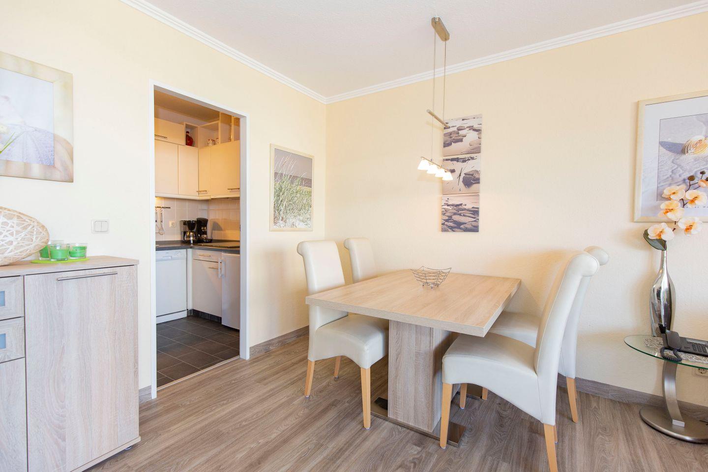 Die moderne, dezente Einrichtung gepaart mit bunten Farbakzenten kreieren echte Wohlfühlatmosphäre, die Grundlage für einen entspannten und erholsamen Urlaub an der Nordsee. Auf 55 m² finden in dieser FeWo bis zu 4 Gäste Platz - ideal für Familien oder Paare. Hier erwartet unsere Urlaubsgäste eine optimale Lage in Strandnähe.