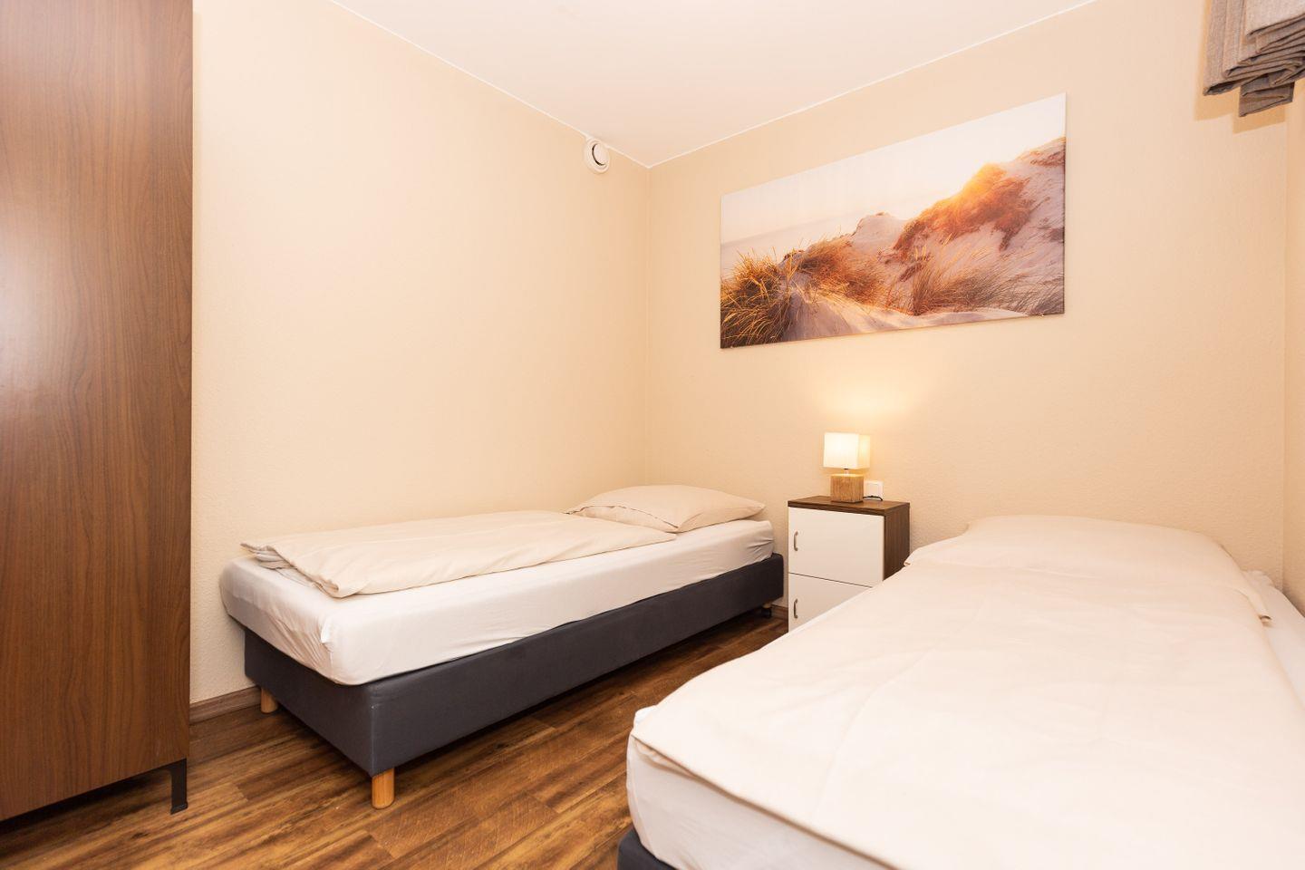 Haus "Kurpark-Residenz", Typ D2, App.-Nr. "202", bis 4 Pers., 2. OG, Ostseite (Richtung "Kugelbake"), ca. 65 m² Größe, Wohnzimmer, sep. Schlafzimmer mit Doppelbett, sep. 2. Schlafzimmer mit zwei Einzelbetten (innenliegend), Dusche/WC, Küche mit Mikrowelle, Geschirrspüler und Backofen, Loggia, Smart-TV, Tiefgaragenstellplatz, Nichtraucher, Haustiere sind erlaubt, Strandkorb im Sommer 2026.