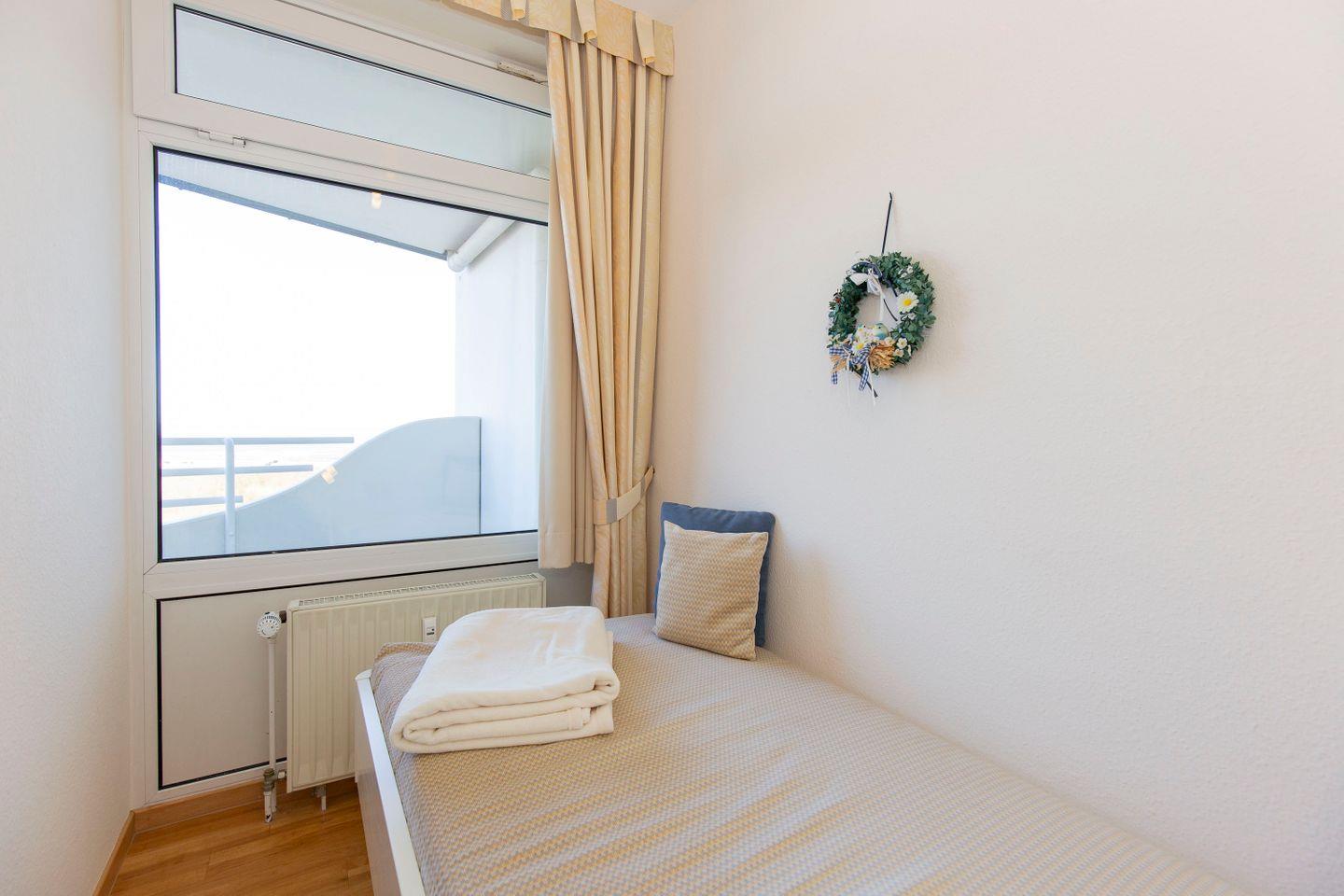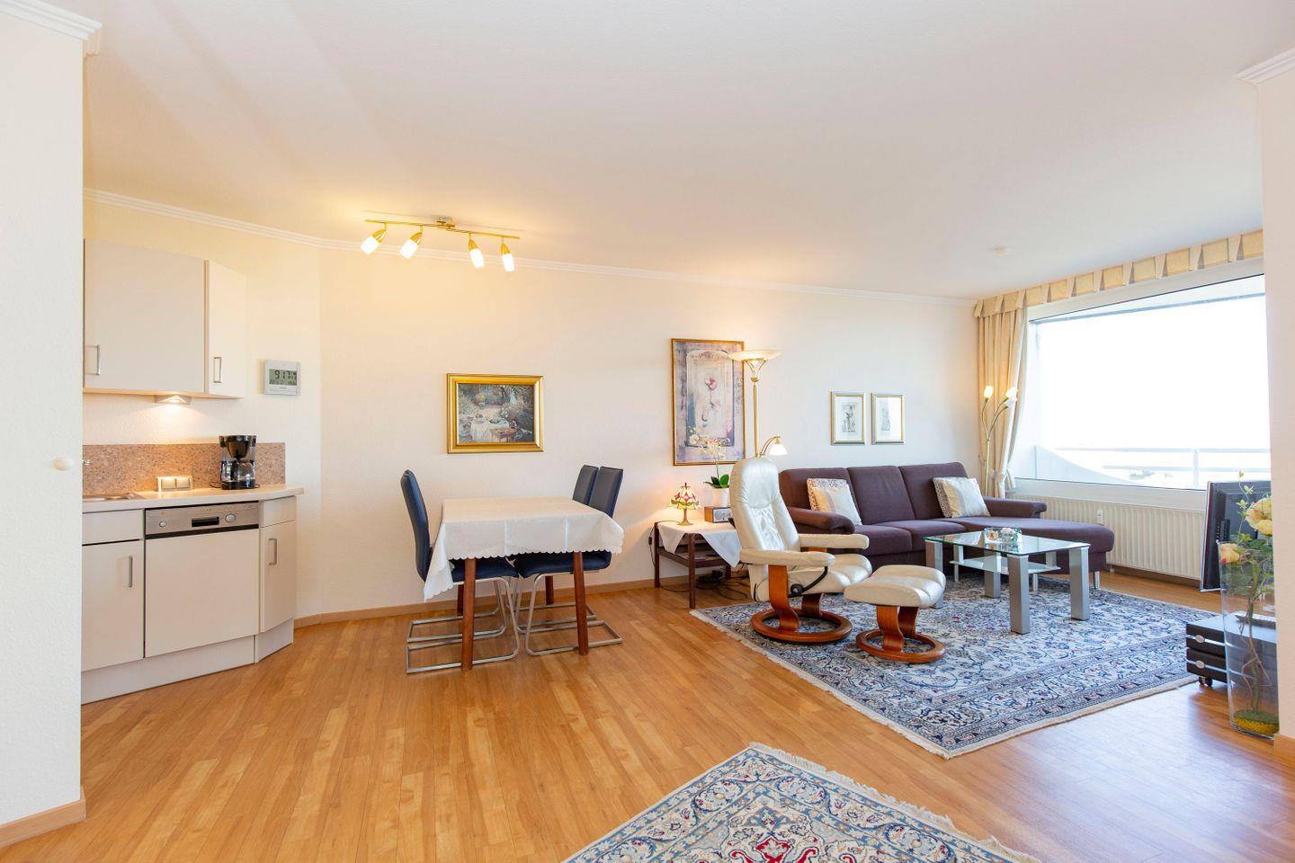 Haus "Lord Nelson", Typ 2, Appartement-Nr. "803", bis 3 Personen, 8. Etage, ca. 40 qm Wohnungsgröße, Weltnaturerbe Wattenmeer (Meerblick Richtung Neuwerk), Renovierung Anfang 2026: Wohnbereich mit fest stehendem Bett (1,80 m breit), separates kleines Schlafzimmer mit Einzelbett, Dusche/WC, Küchenzeile mit Geschirrspüler/Mikrowelle, 4 Platten Ceranfeld, Senseo-Maschine, Kabel-TV, DVD-und CD-Spieler, Tresor, kostenloser WLAN-Zugang im App. Balkon, Außenstellplatz, Strandkorb im Sommer 2026, Nichtraucherwohnung, Haustiere sind nicht gestattet.