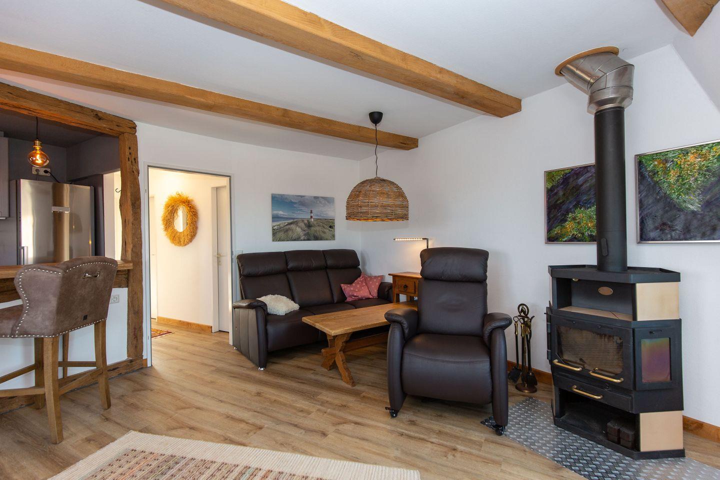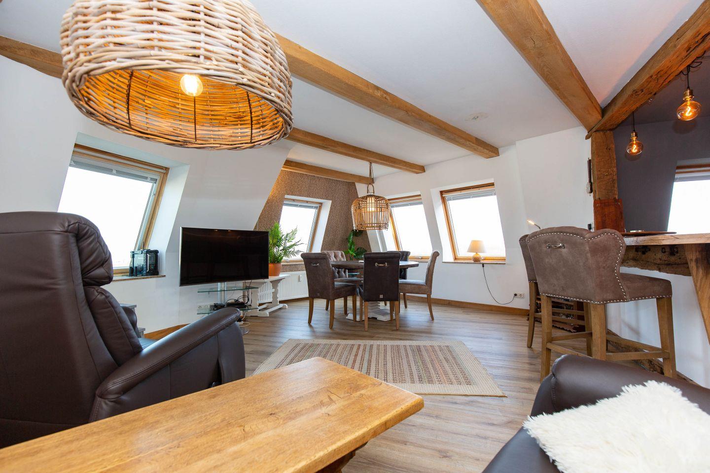 Mit einer modernen Einrichtung und viel Liebe zum Detail entpuppt sich die 2-Zimmer Ferienwohnung als wunderbares zu Hause auf Zeit an der Nordsee. Auf 66 m² bietet das Urlaubsdomizil Platz für bis zu vier Personen und eignet sich perfekt für Familien oder Paare. Großzügigkeit ist hier Programm: Von dem Wohnbereich über die rustikale Küche bis hin zu der großen Dachterrasse mit eigenem Strandkorb. Zusätzlich erwartet Sie ein fabelhafter Ausblick auf die Nordsee in Richtung Neuwerk.