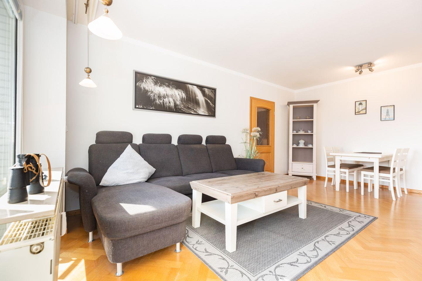 Gemütliche 55m² Ferienwohnung in Cuxhaven-Döse mit zwei Balkonen und seitlichem Meerblick, ideal für Familien.