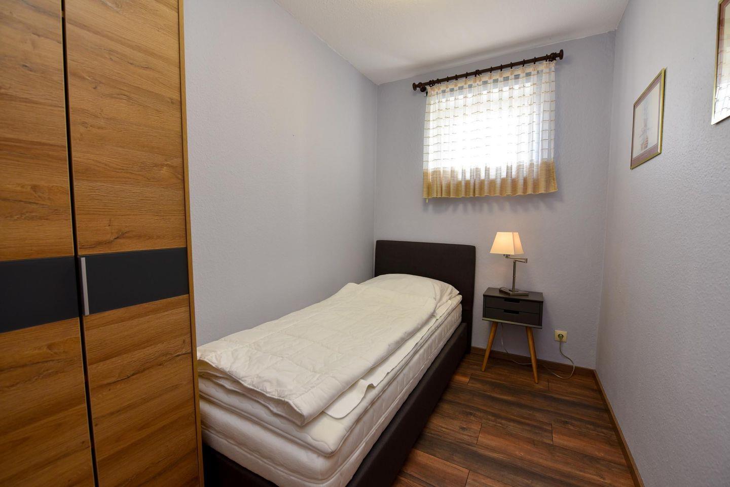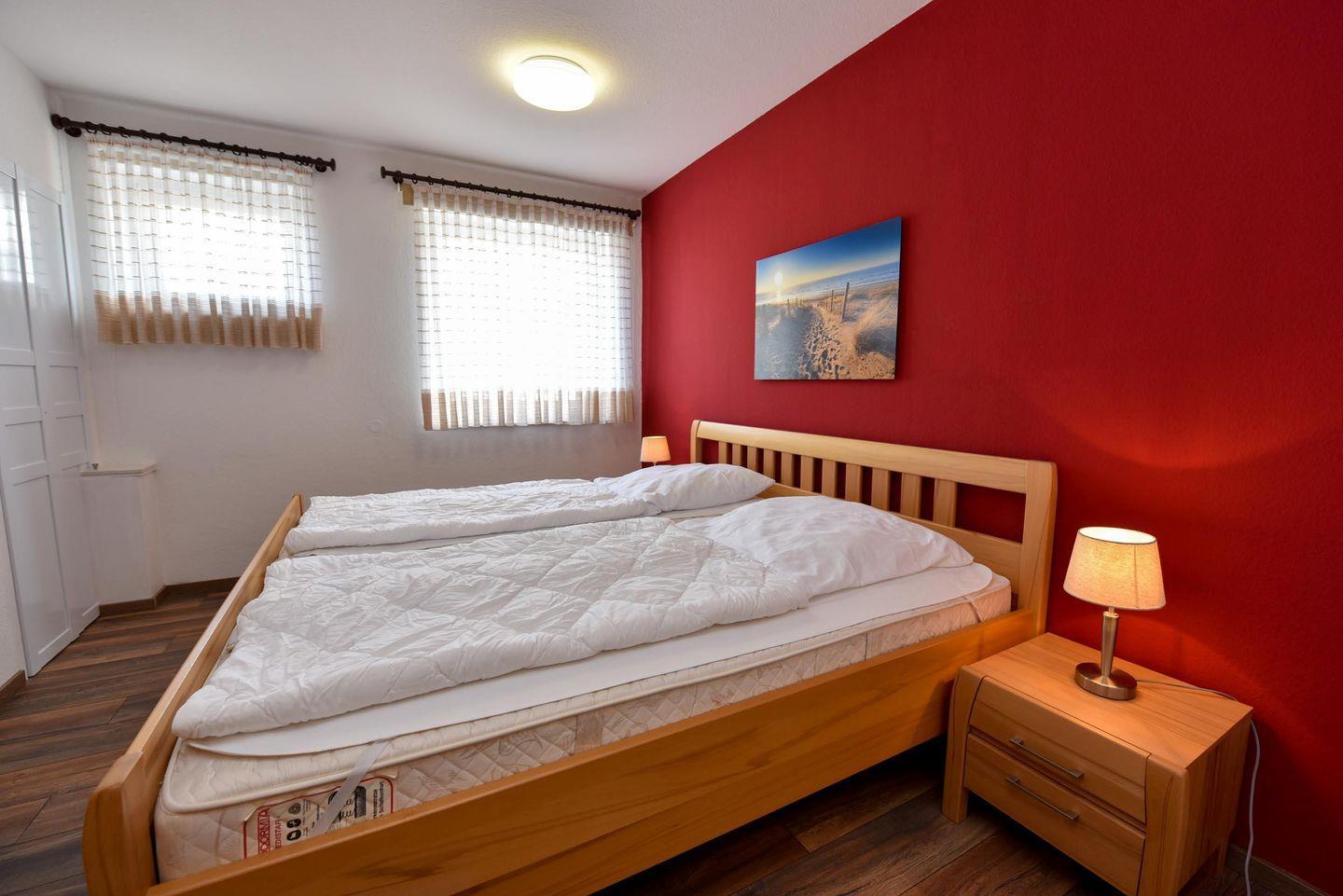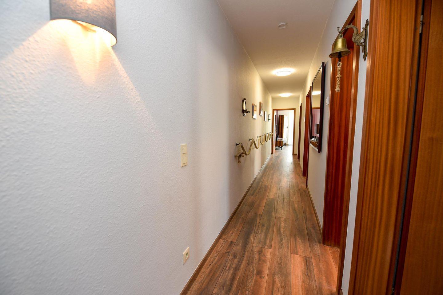 Die 3 Zimmer Eckwohnung Nr. 8 mit separater Küche und Balkon im Haus "Nautilus" liegt im Hochparterre und hat eine direkte Seesicht auf das UNSECO Weltnaturerbe Wattenmeer sowie den Weltschifffahrtweg. Die Wohnung ist aufgeteilt in ein Wohnzimmer, Küche, Schlafzimmer mit Doppelbett und ein Schlafzimmer mit einem Boxspringbett sowie einem Bad mit Dusche und WC.
