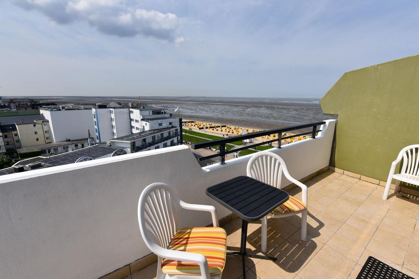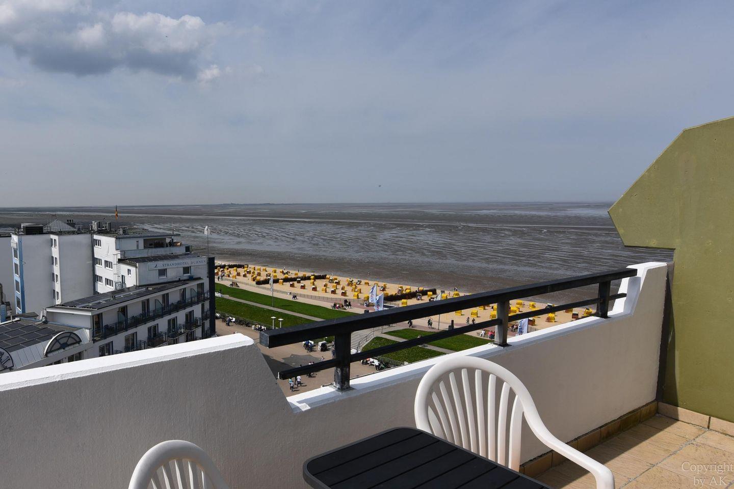 Helle Eckwohnung mit Seeblick und Balkon im Haus Panorama in Cuxhaven-Duhnen.